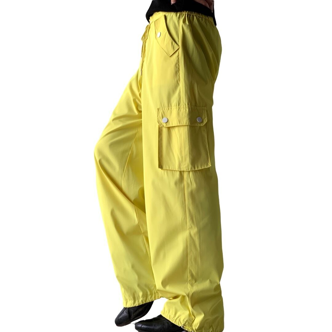 ♾ FASHION NOVA ♾ design color poly cargo pants -high light yellow-