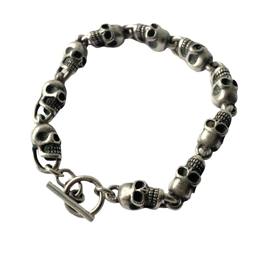 チェーンのコマ一つ一つがスカルモチーフの厳つさが最高なシルバーブレスレット❗️