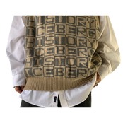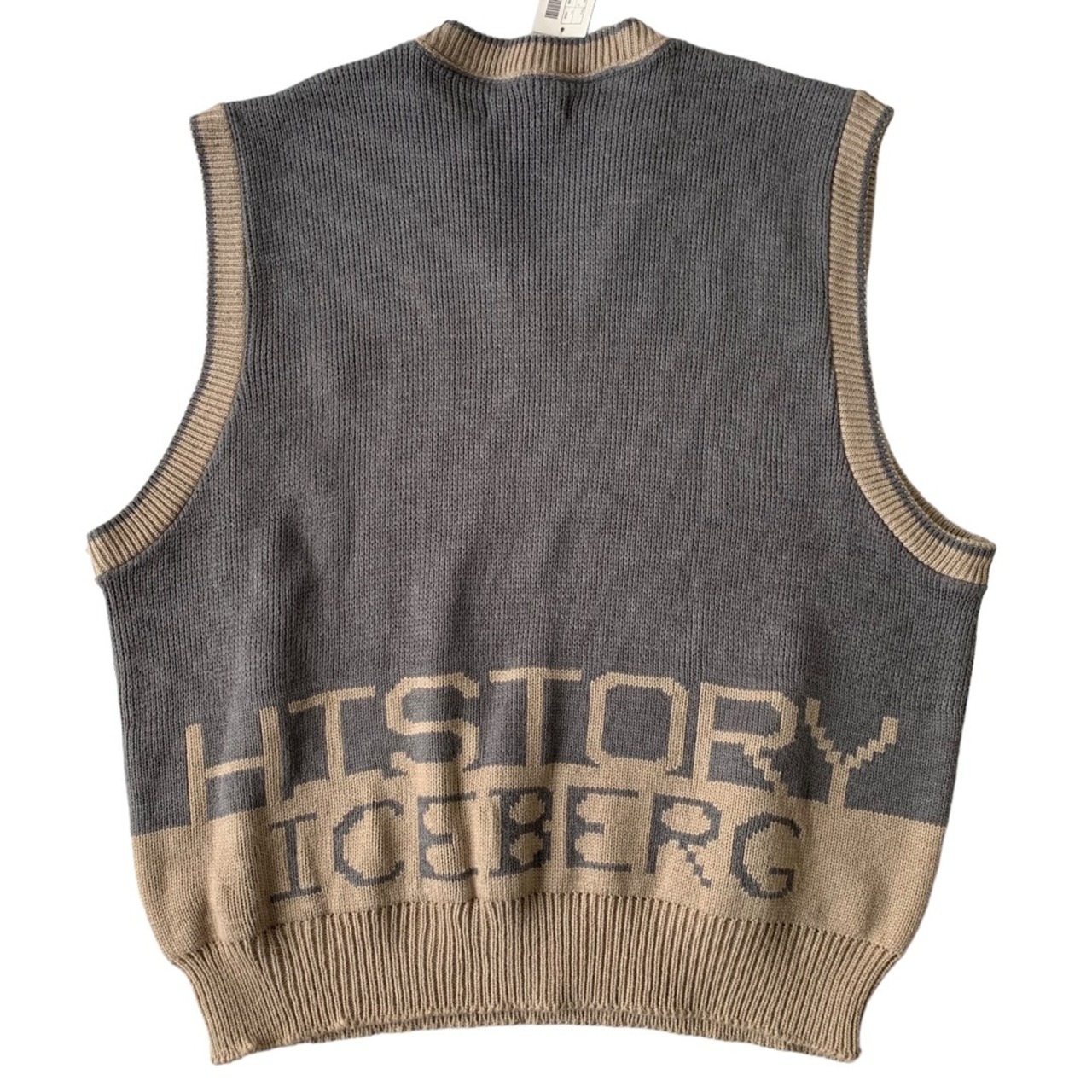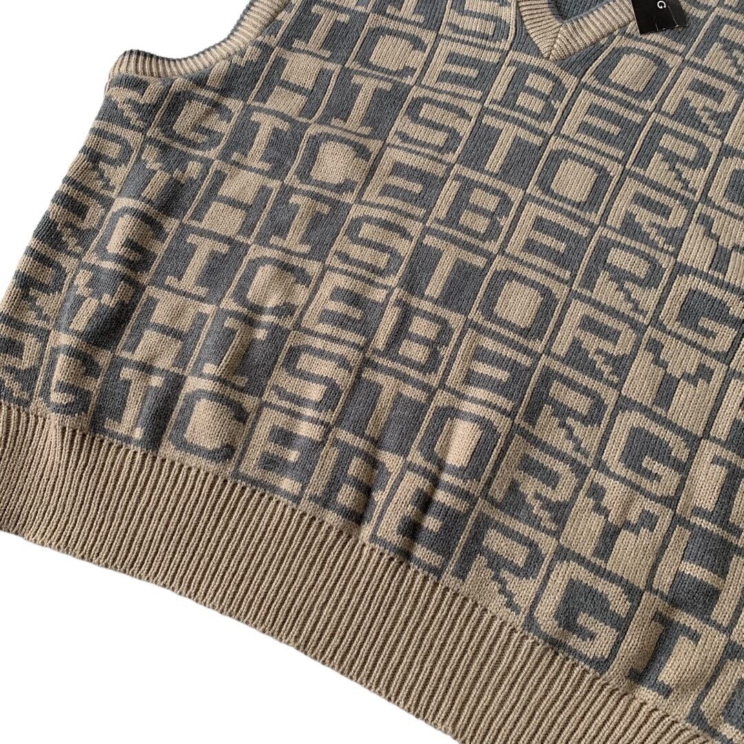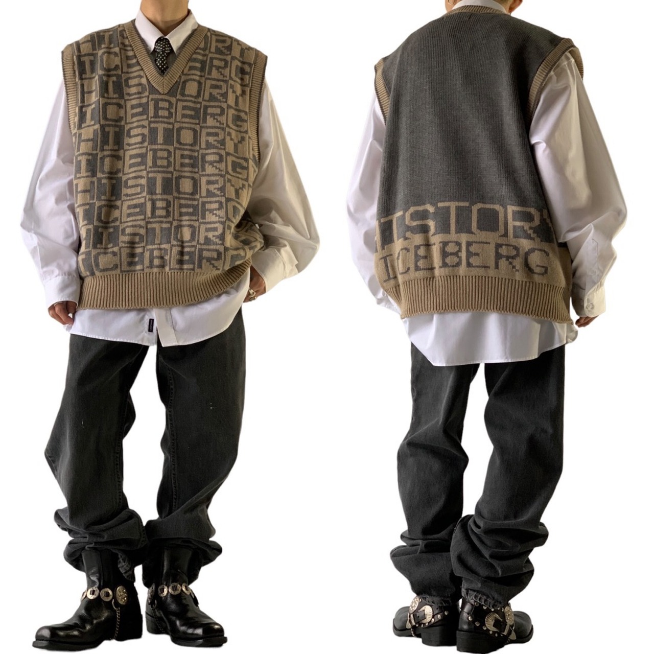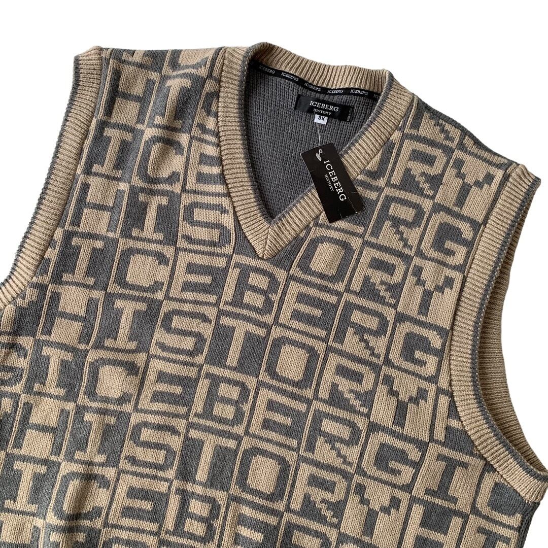 ♾ ICEBERG ♾ block panel logo design knit vest size3X / MADE IN ITALY /dead stock
