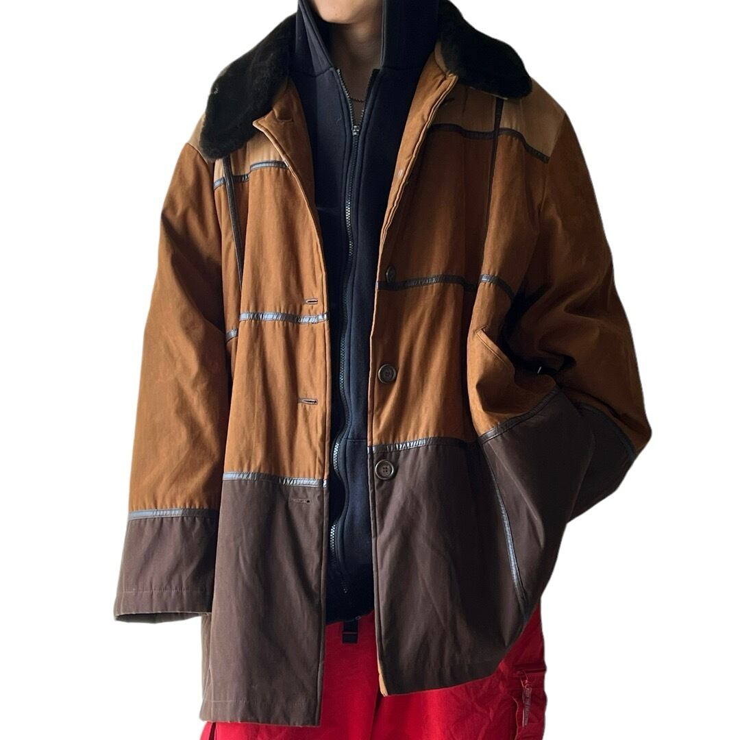 【CBO NEWYORK】 Leather Piping Three tone Fur collar Puffy Jacket