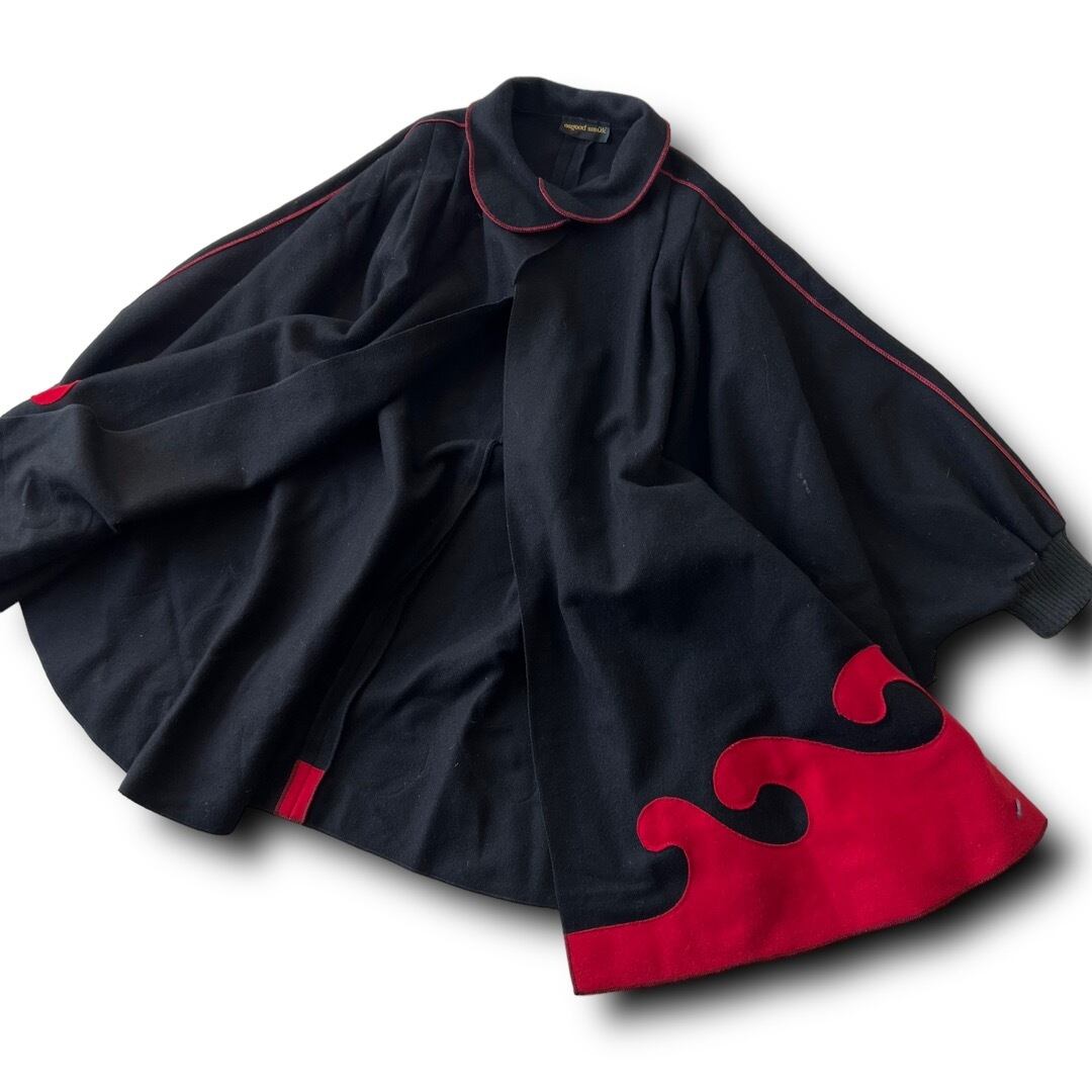 ブラックボディに赤のステッチや裾の波模様が一際インパクトを与えてくれるおしゃれポンチョ‼️