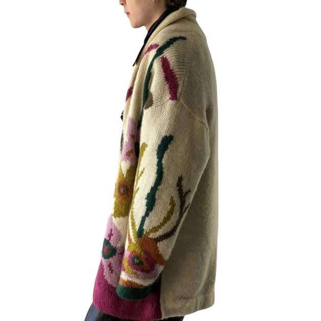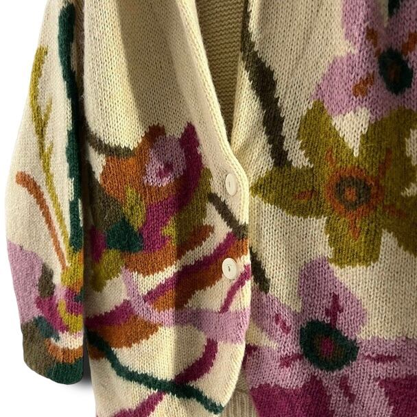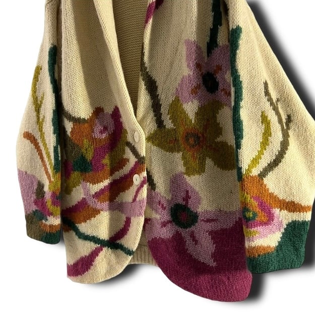 ウールニットで花柄に編まれたロング形カーディガン❗️