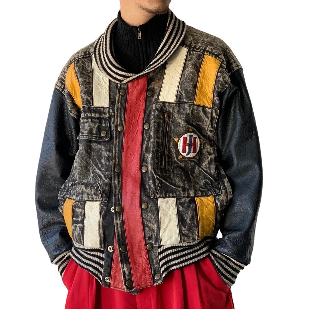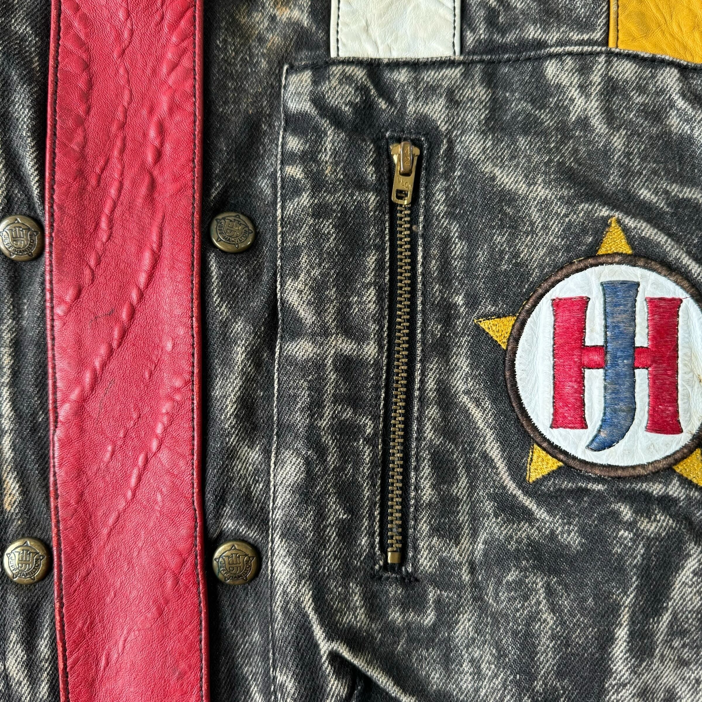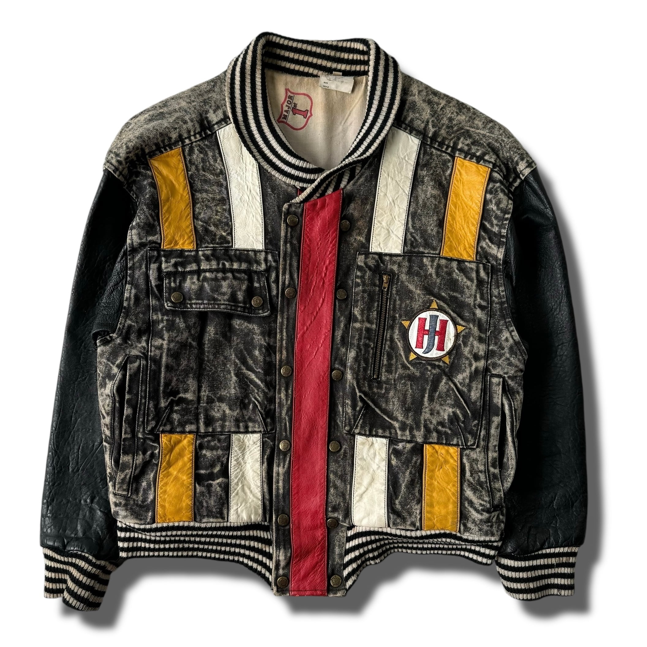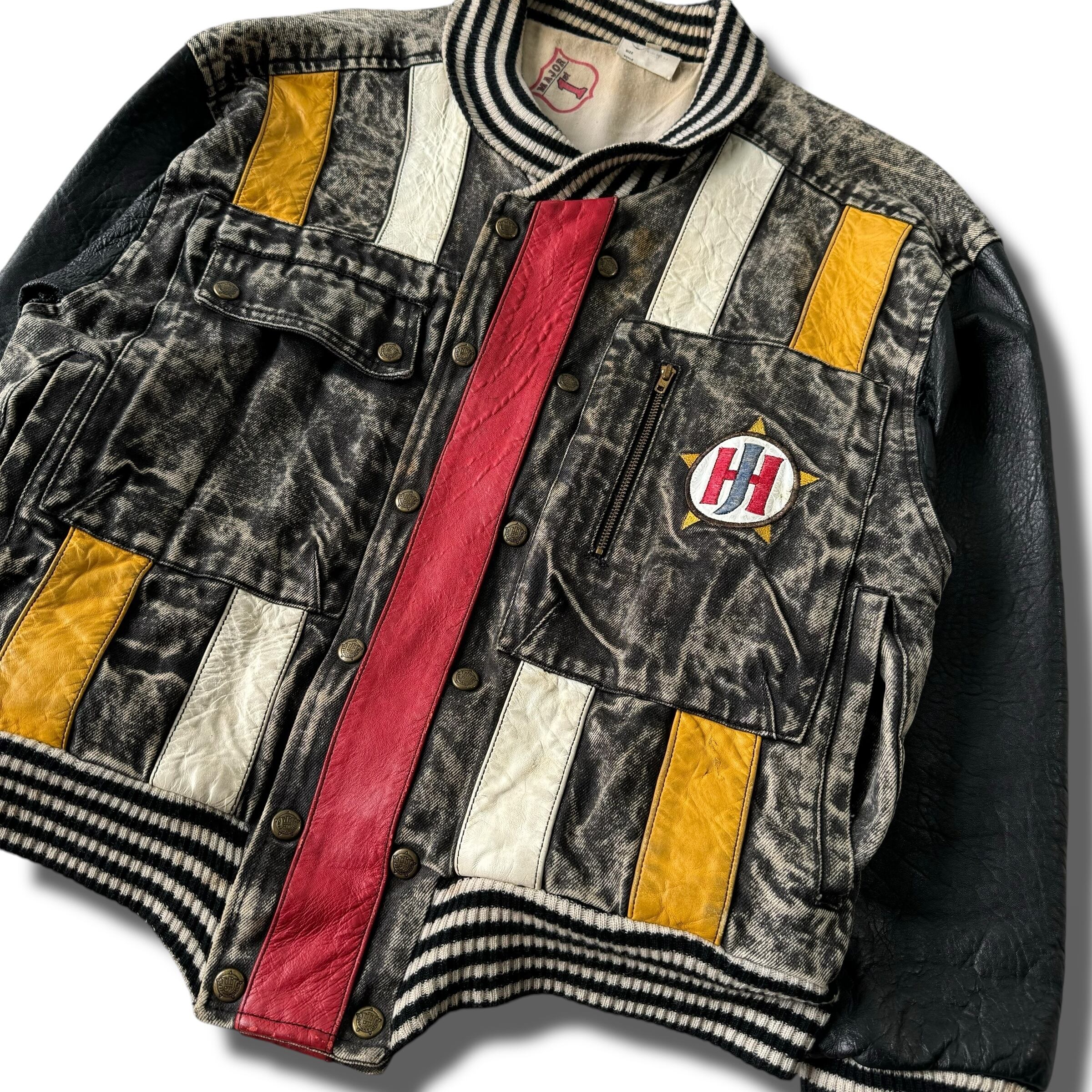 ♾80's JEFF HAMILTON♾ Leather sleeve black chemical denim jacket