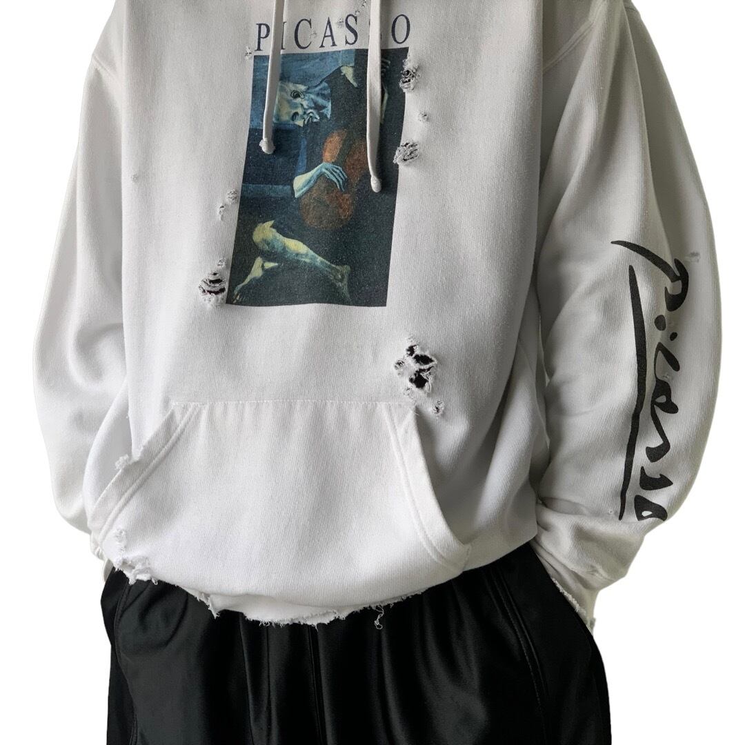 ♾PICASSO♾ art print crushed hoodie 〜老いたギター弾き〜