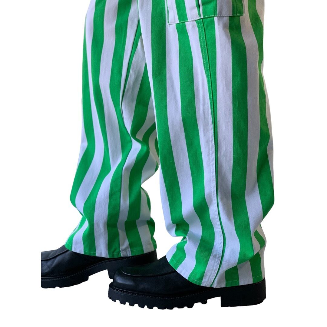発色抜群太ピッチストライプボーダーが特徴的なGAME BIBSのカーゴディテールパンツ❗️