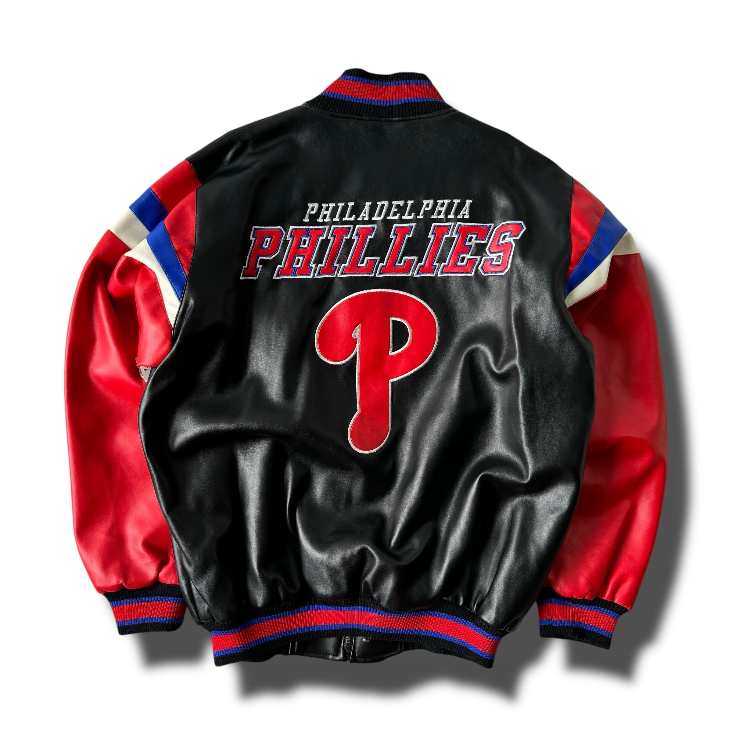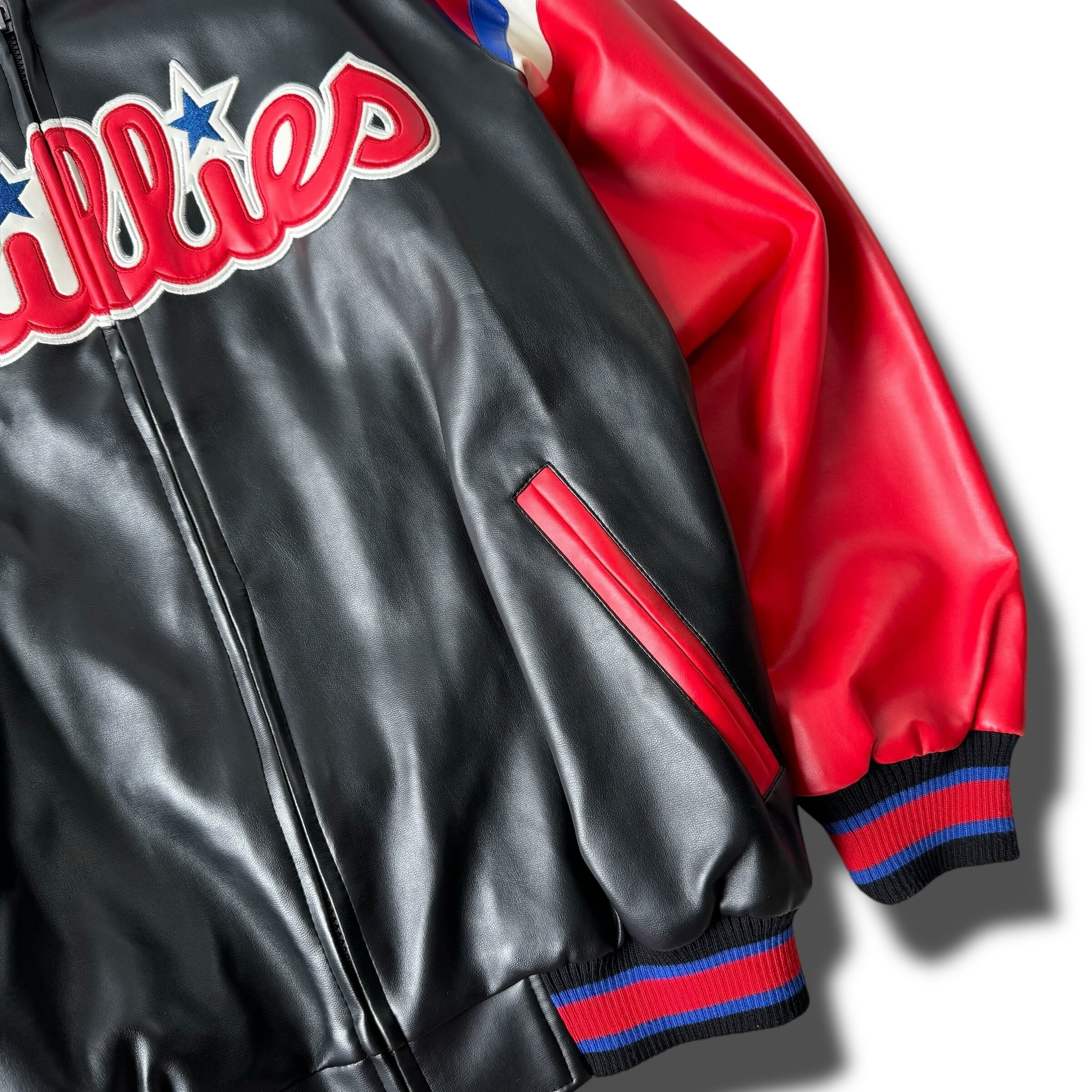 ♾ GENUINE MERCHANDISE ♾ "Phillies" logo design pvc leather varsity jacket size M DEADSTOCK