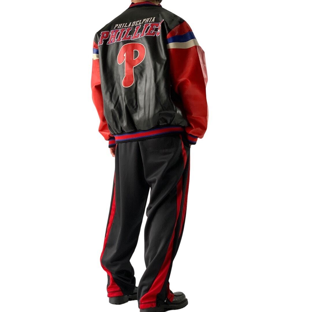 GENUINE MERCHANDISEからMLBフィリーズのデザインPVCレザーバーシティージャケットがデッドで入荷✨
