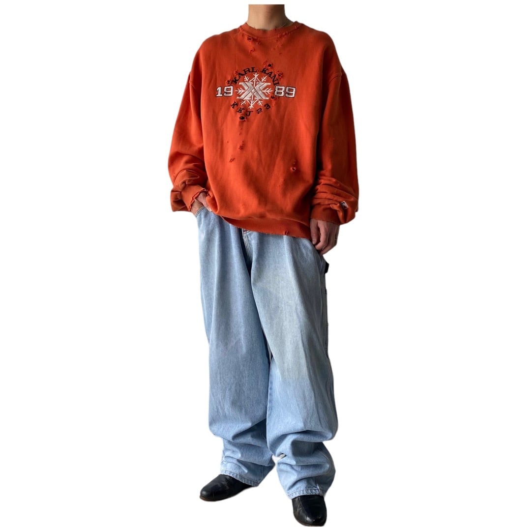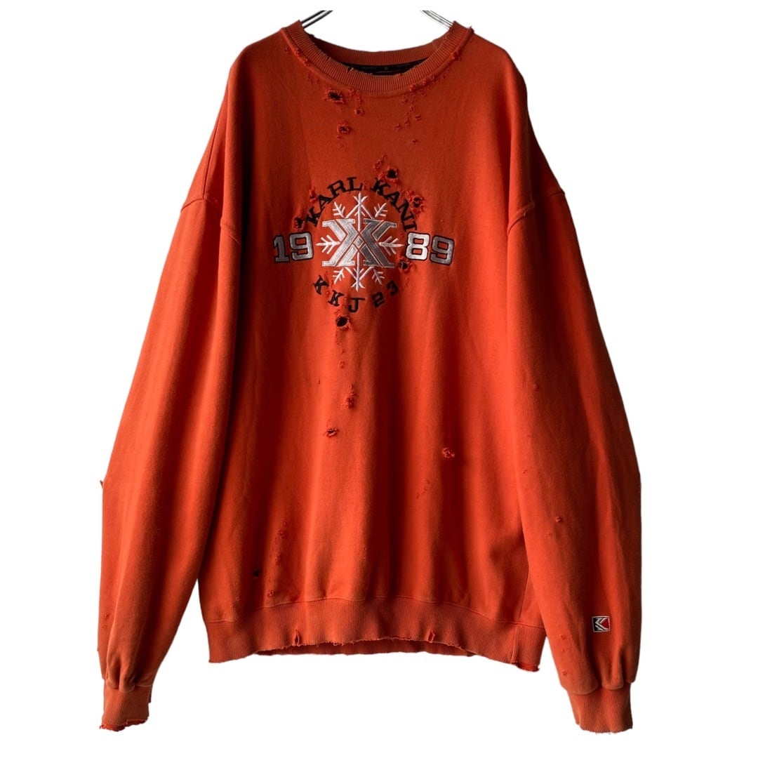 HIPHOP界初のデザイナーズブランドとして設立当初から現在までトップの座に君臨し続ける"KARL KANI"フロントセンターのロゴとクラッシュ加工がアクセントになったデザインスウェットちゃん❗️