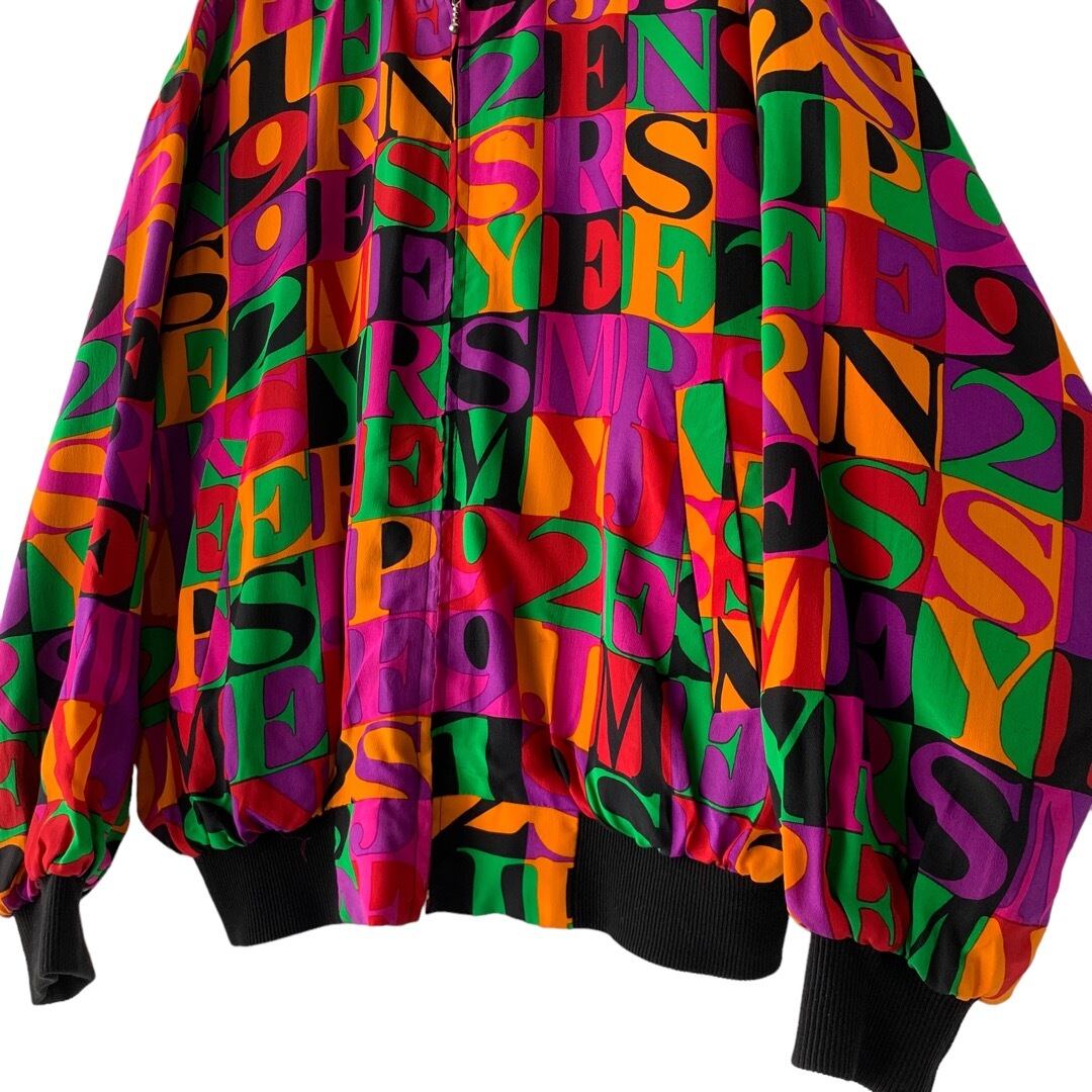 ブランドのロゴをパネルで全面にデザインした独特な配色が大胆なシルクブルゾン❗️