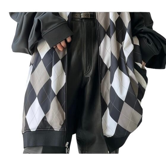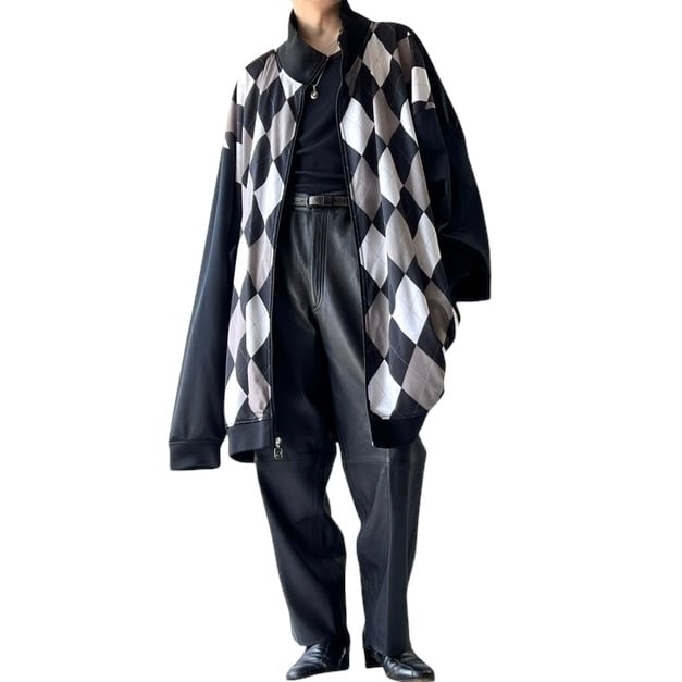 【Knockout Jeans】Argyle pattern swiching design Monster size track jacket