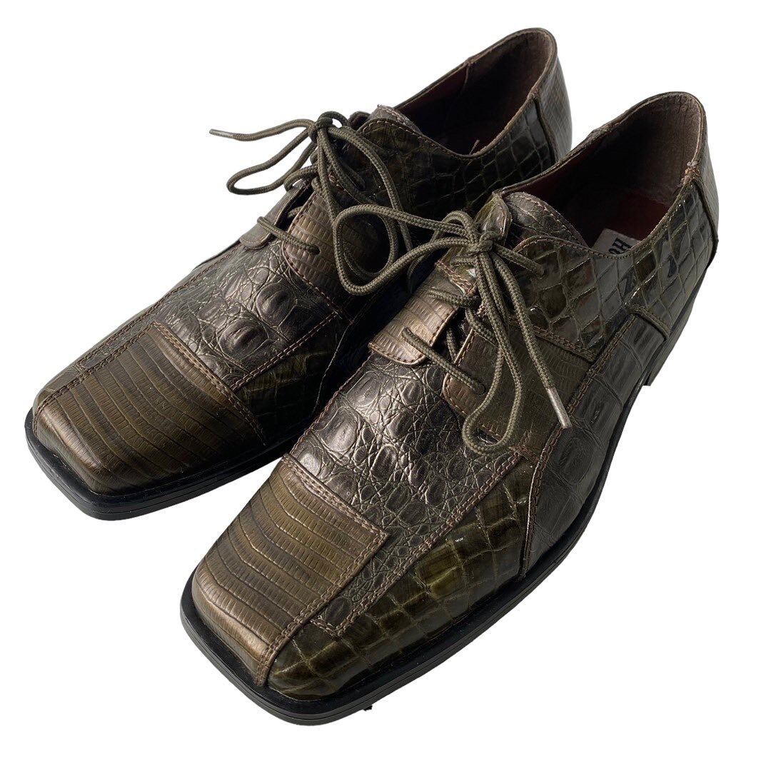 ♾HUGO VITELLI♾ Crocodile pattern PU leather square loafers size 9 1/2 (着用感 27cm〜27.5cm程)