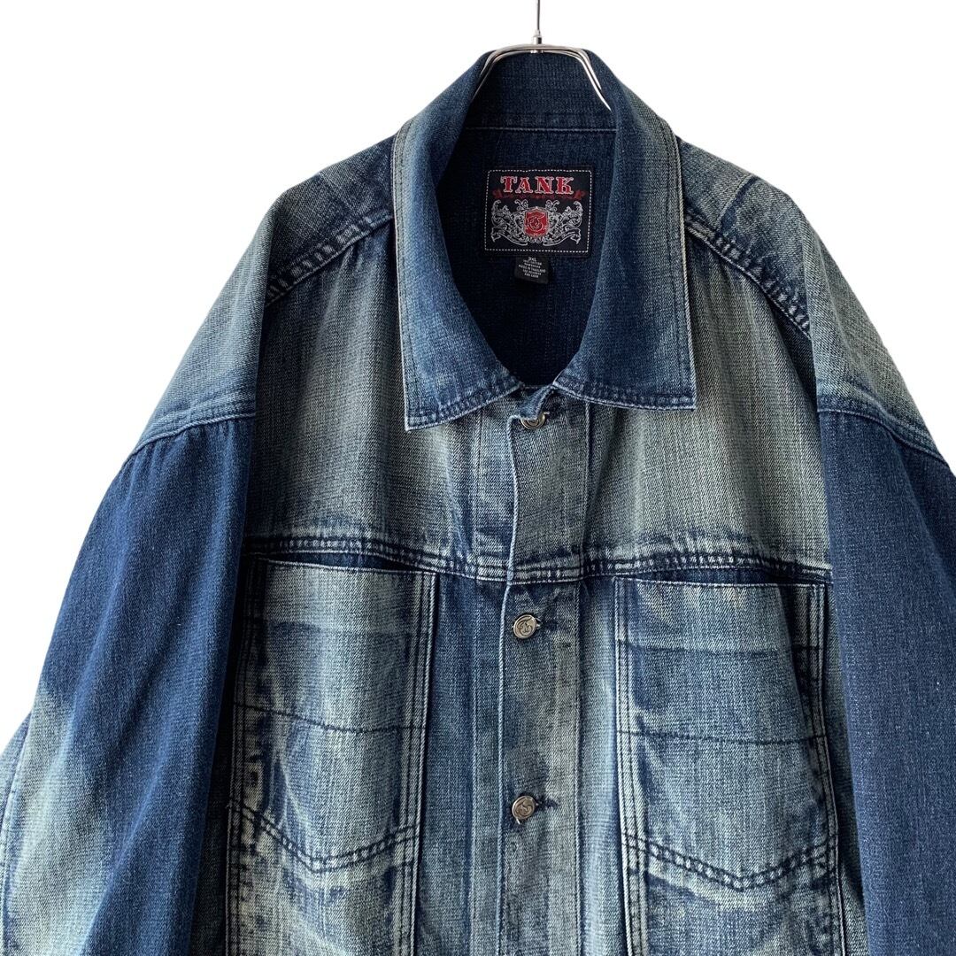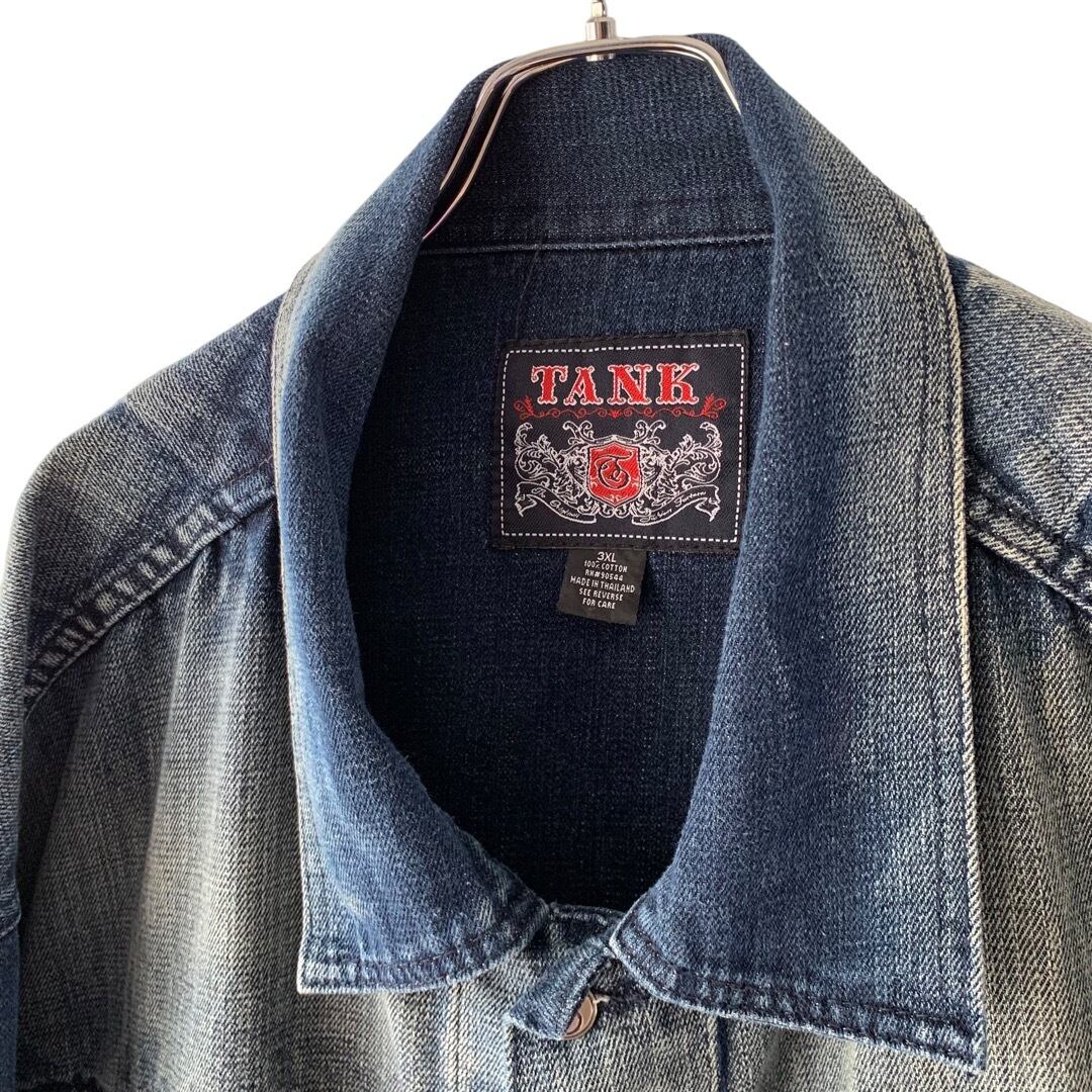 ♾TANK♾ over silhouette design denim tracker jacket sizeXXXL