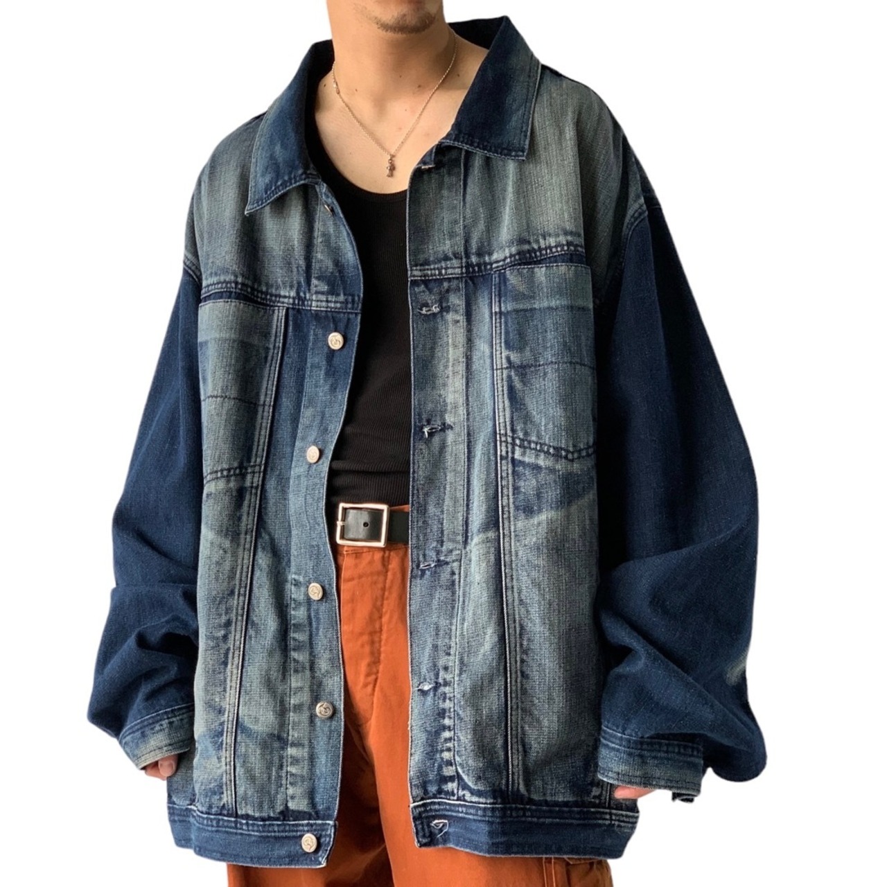 荒いウォッシュのかかった加工が映えるオーバシルエットデニムジャケット❗️