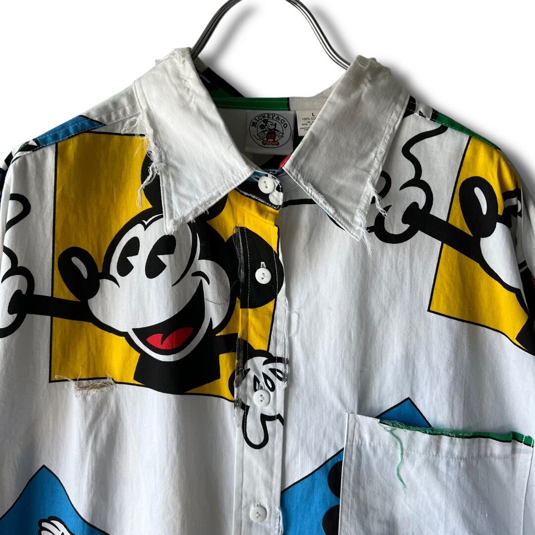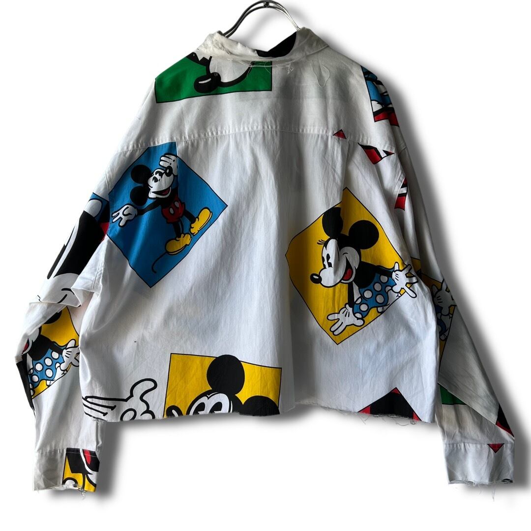 【MICKEY&CO.】 90's ©︎Disney Classic Mickey Mouse』 "short custom crush design" Mulch pattern shirt