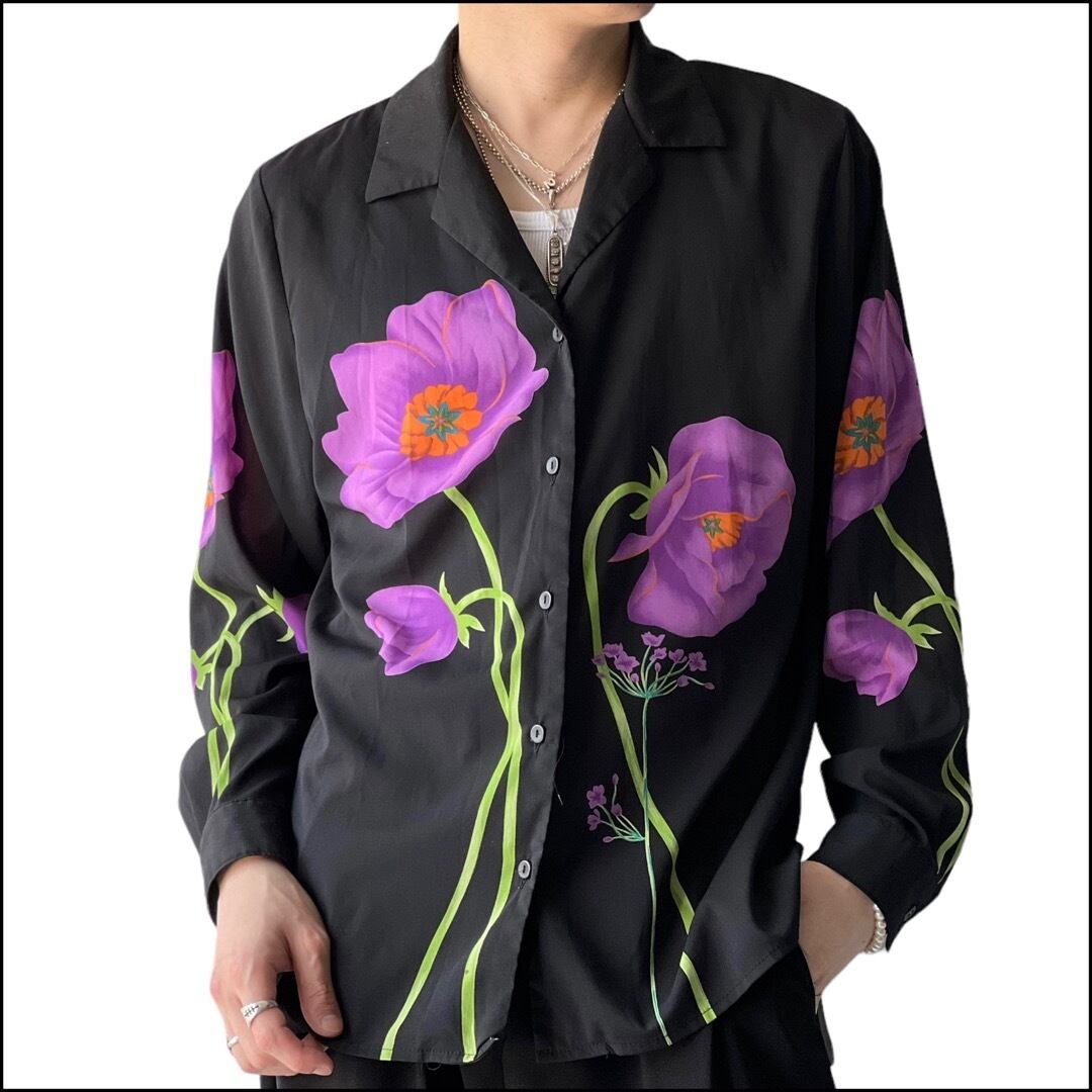 【SAG HARBOR】 Flower Graphic Print Open Collar shirt