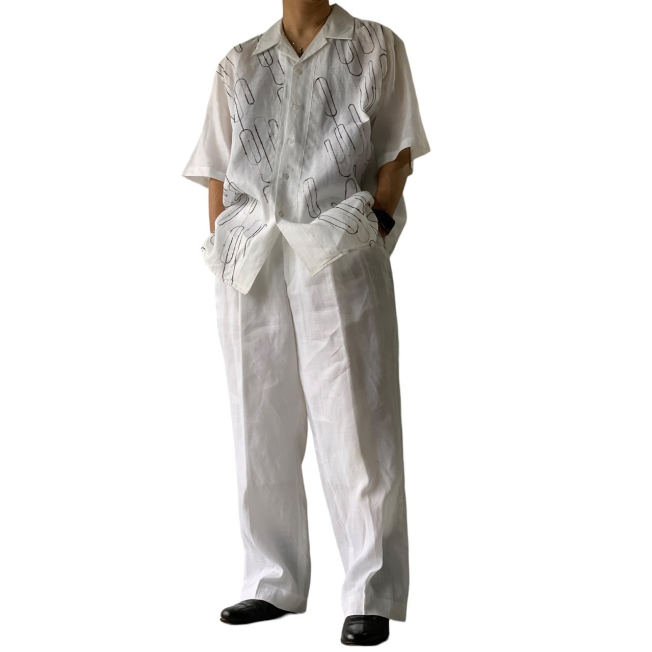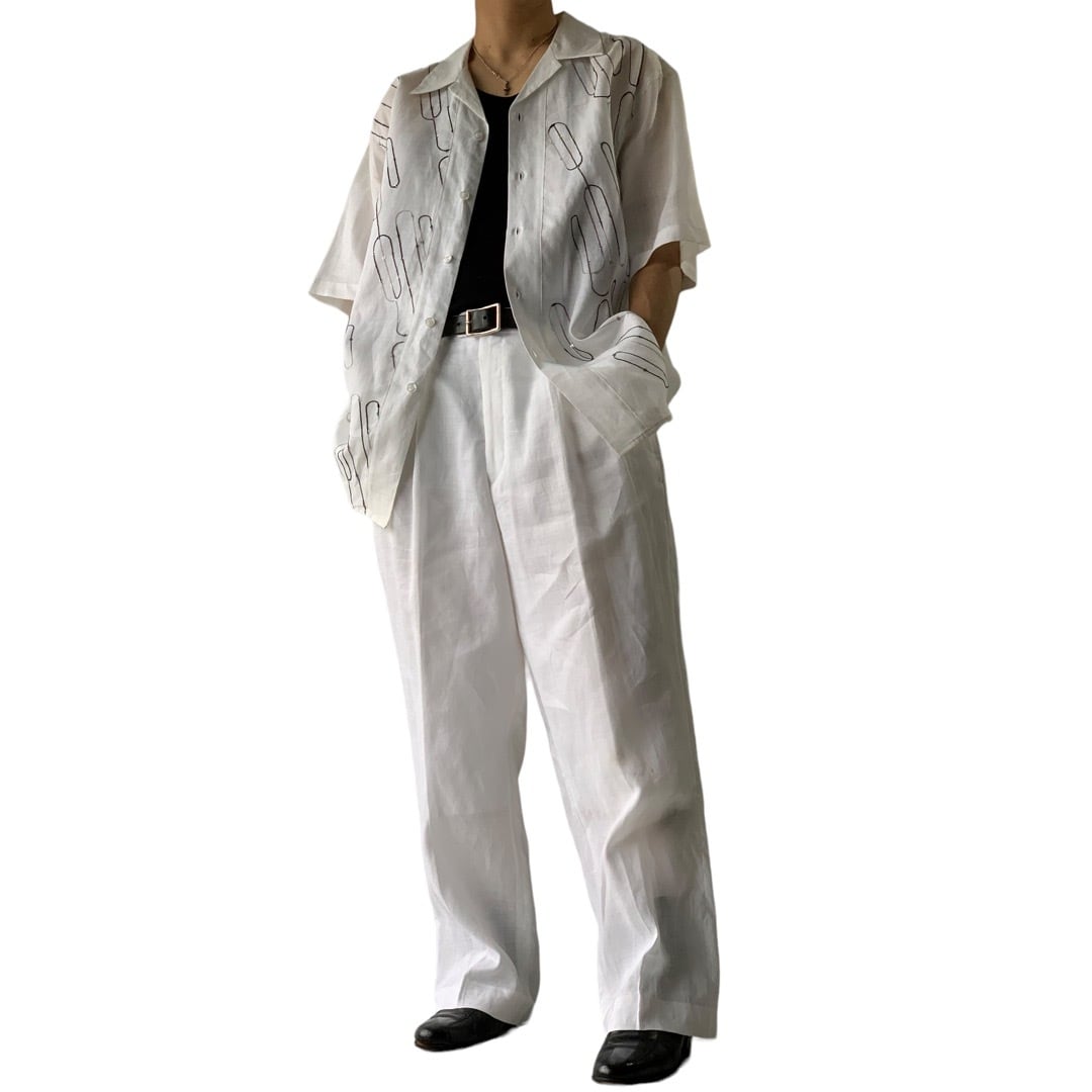 ♾PRONTI♾ embroidery & sequin design open collar linen wide slacks set up