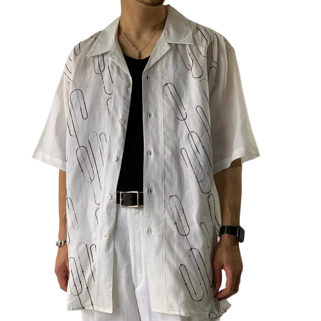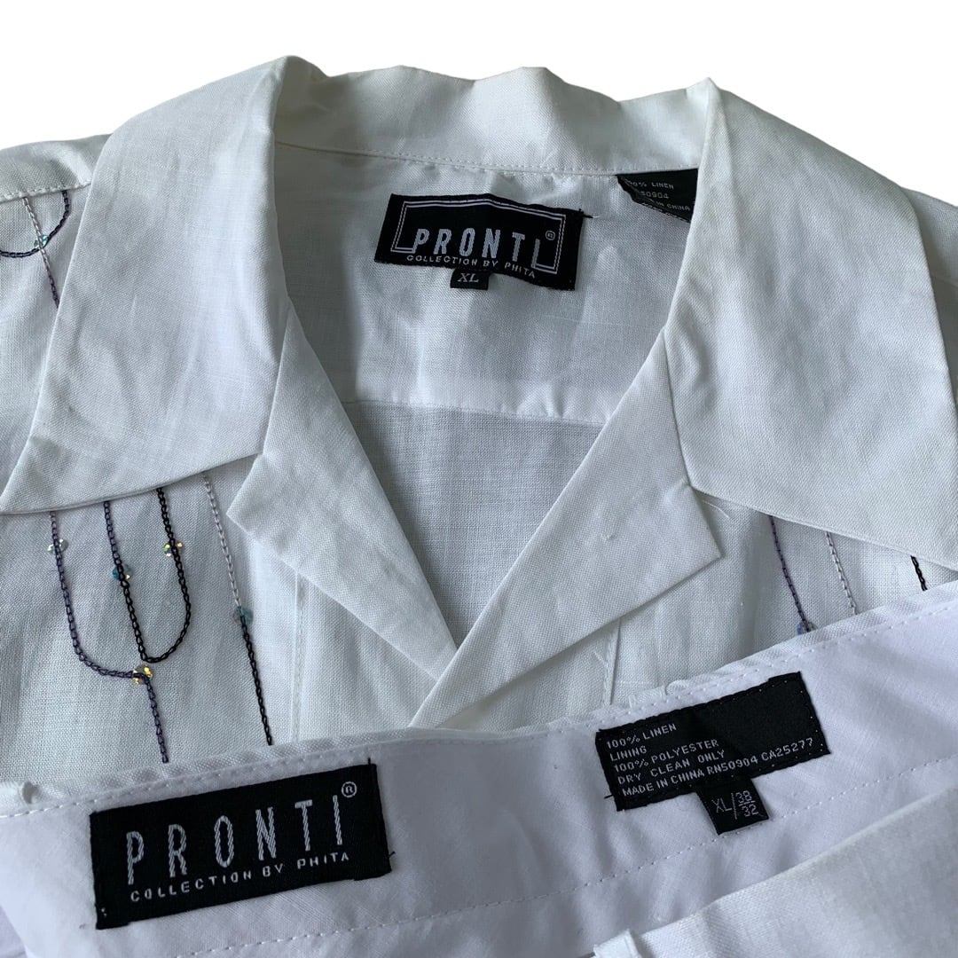 ライトなホワイトリネン素材を使用しチェーンステッチデザインにスパンコールの装飾がされた超絶お洒落セットアップ‼️