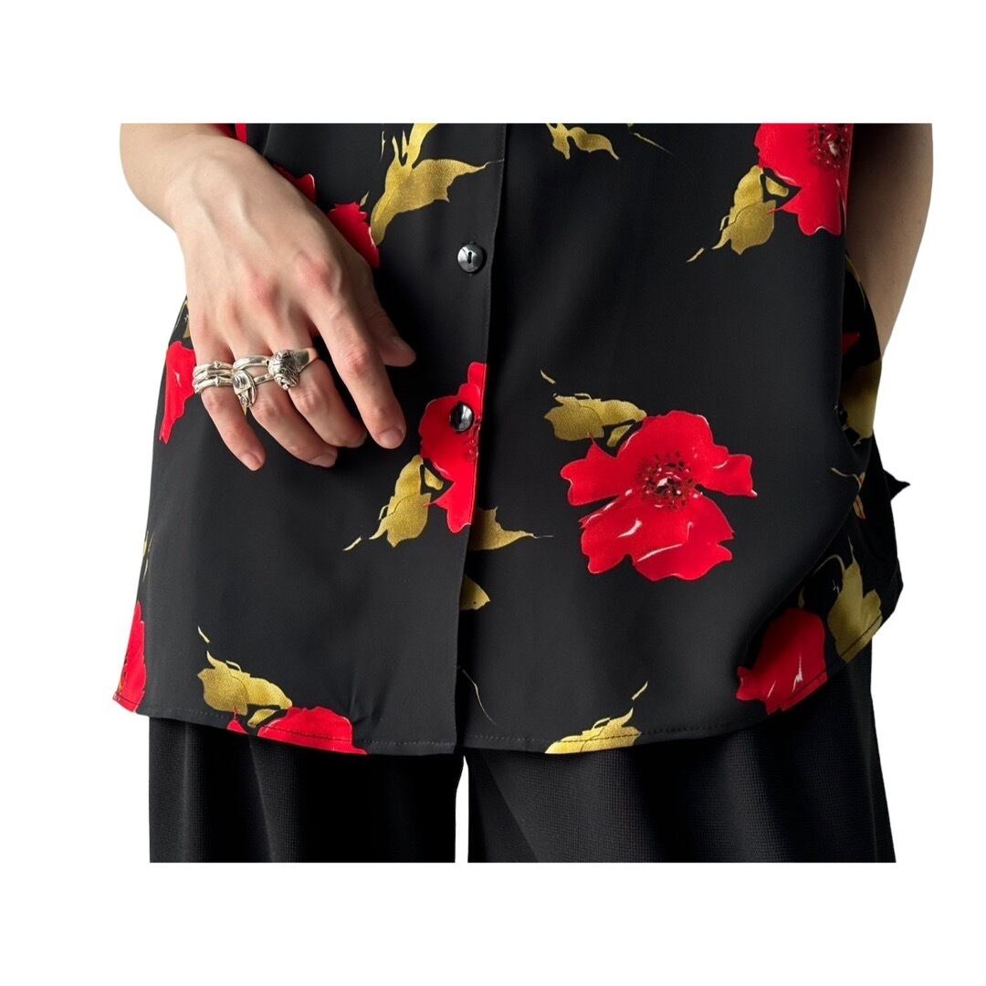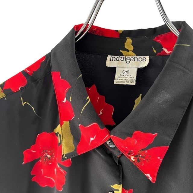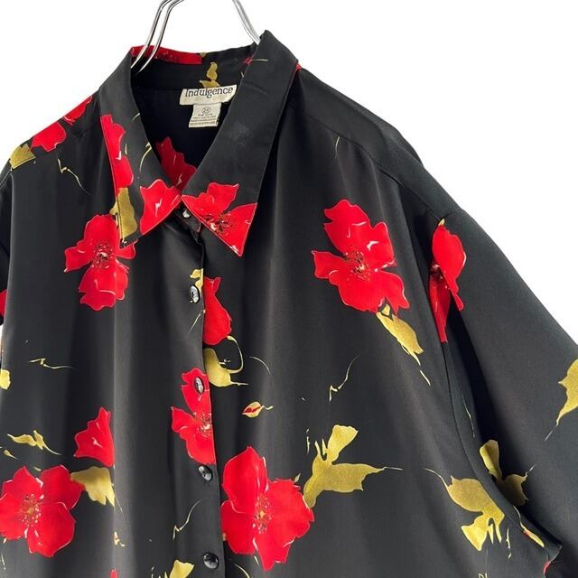 【indulgence】Flower pattern S/S Poly fabric Relux shirt