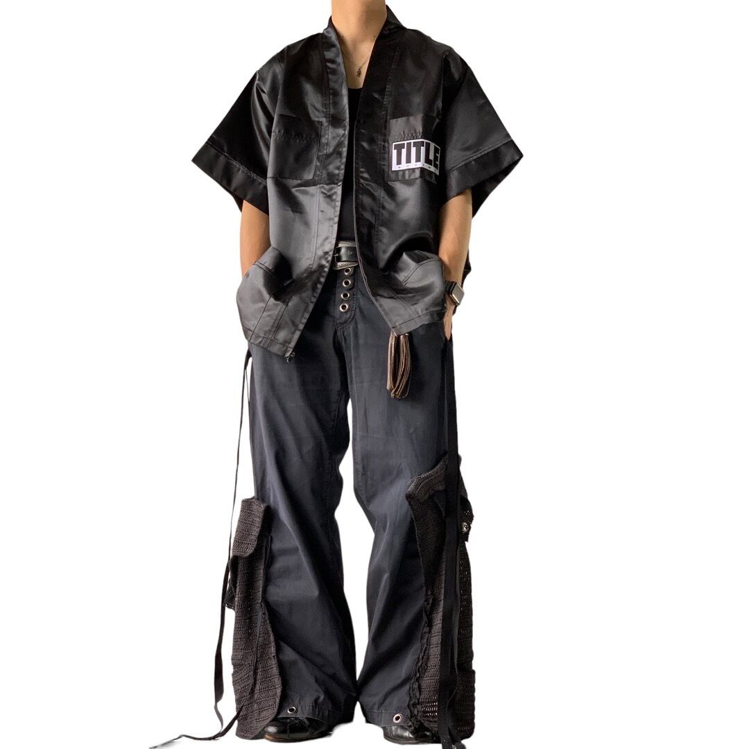 ♾TITLE BOXING♾ collar less design zip shirt sizeL