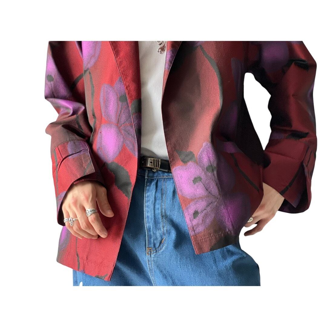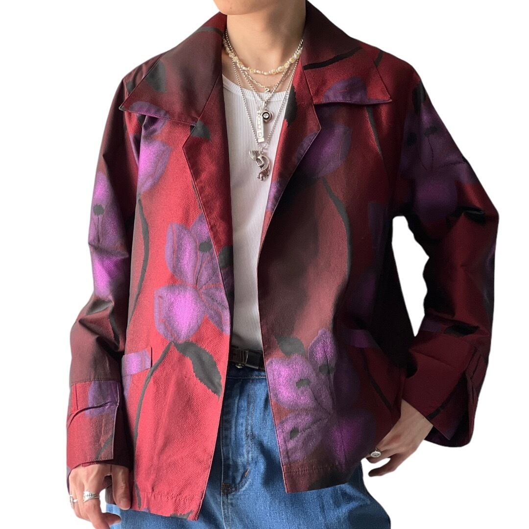 【CAROLINE ROSE】 Flower graphic pattern Buttonless jacket