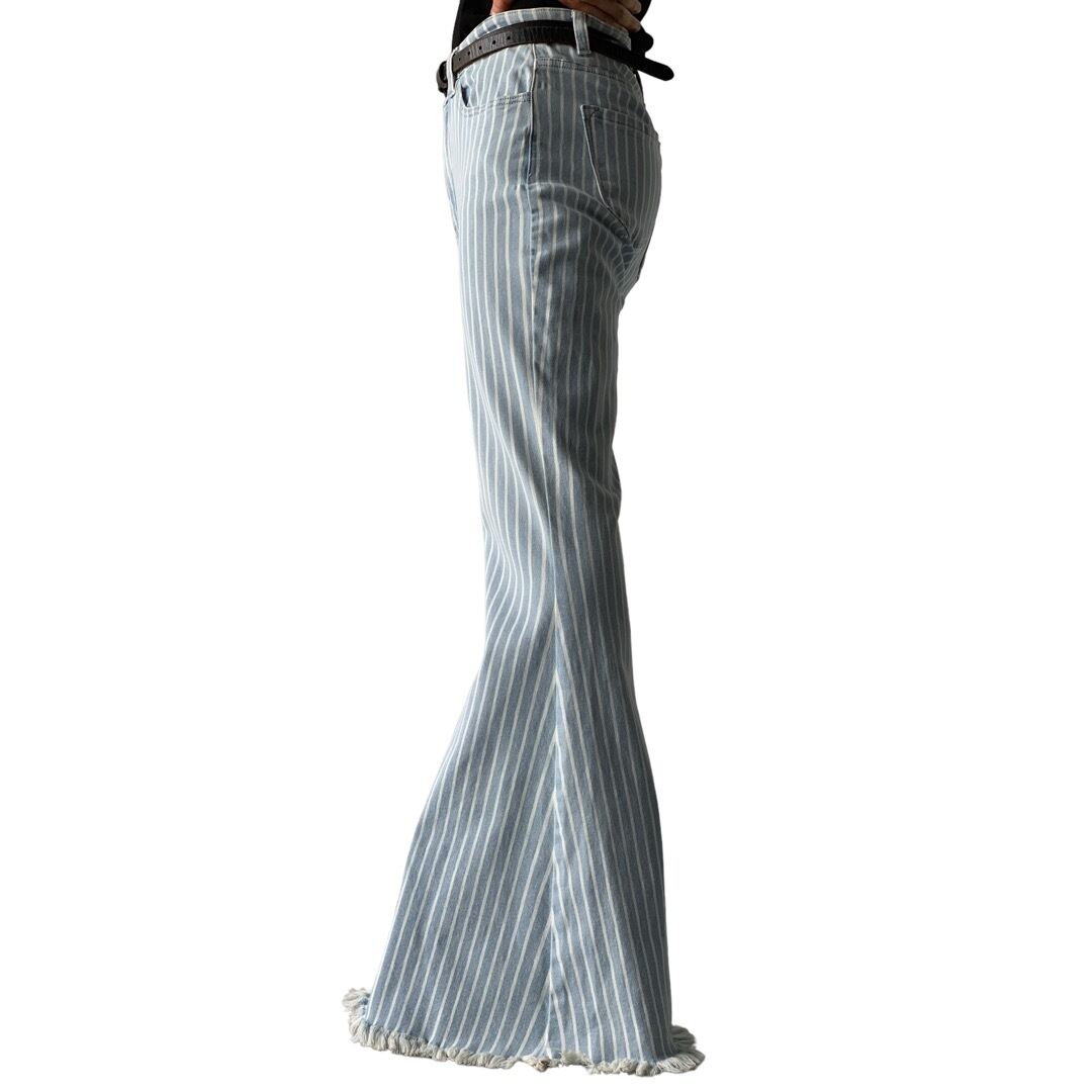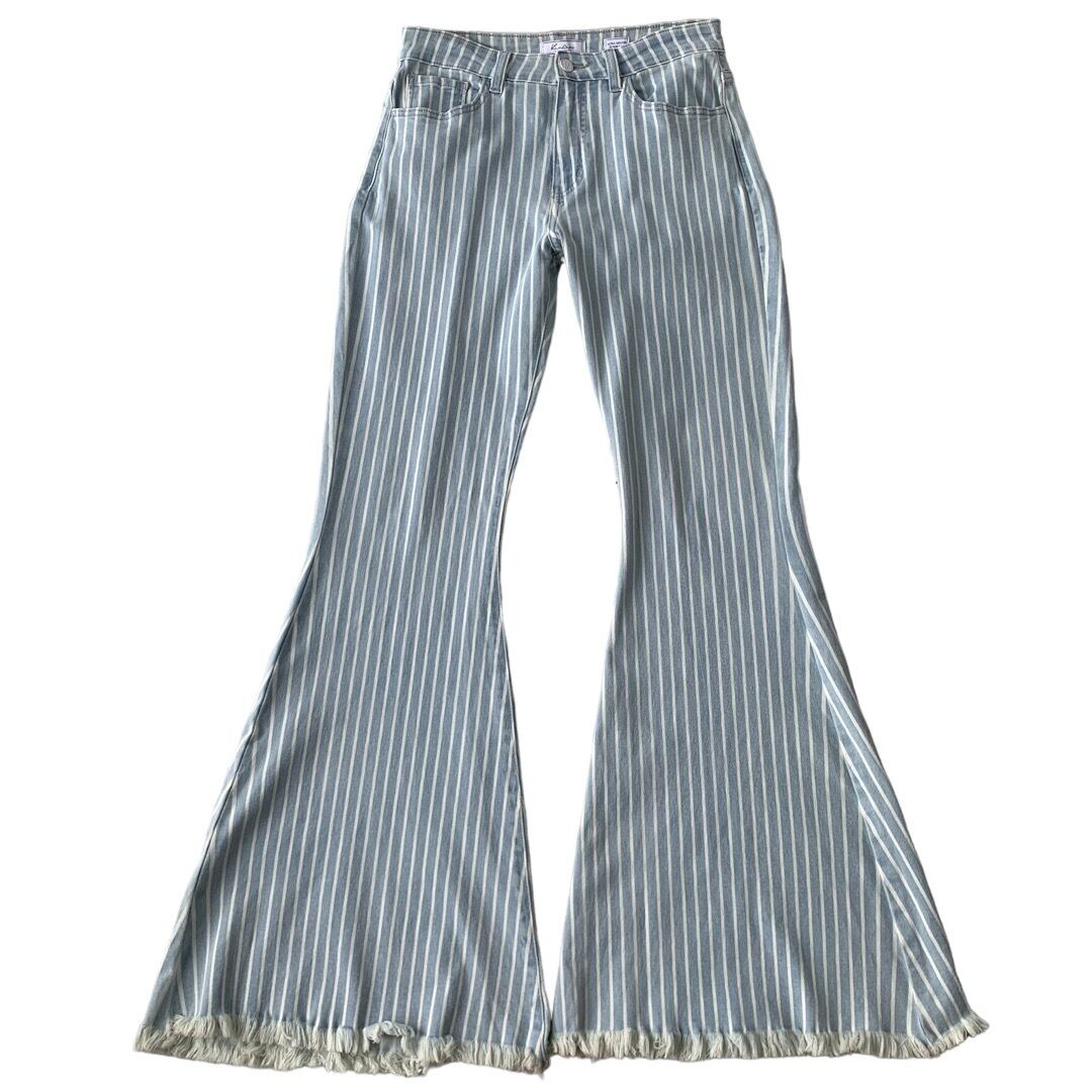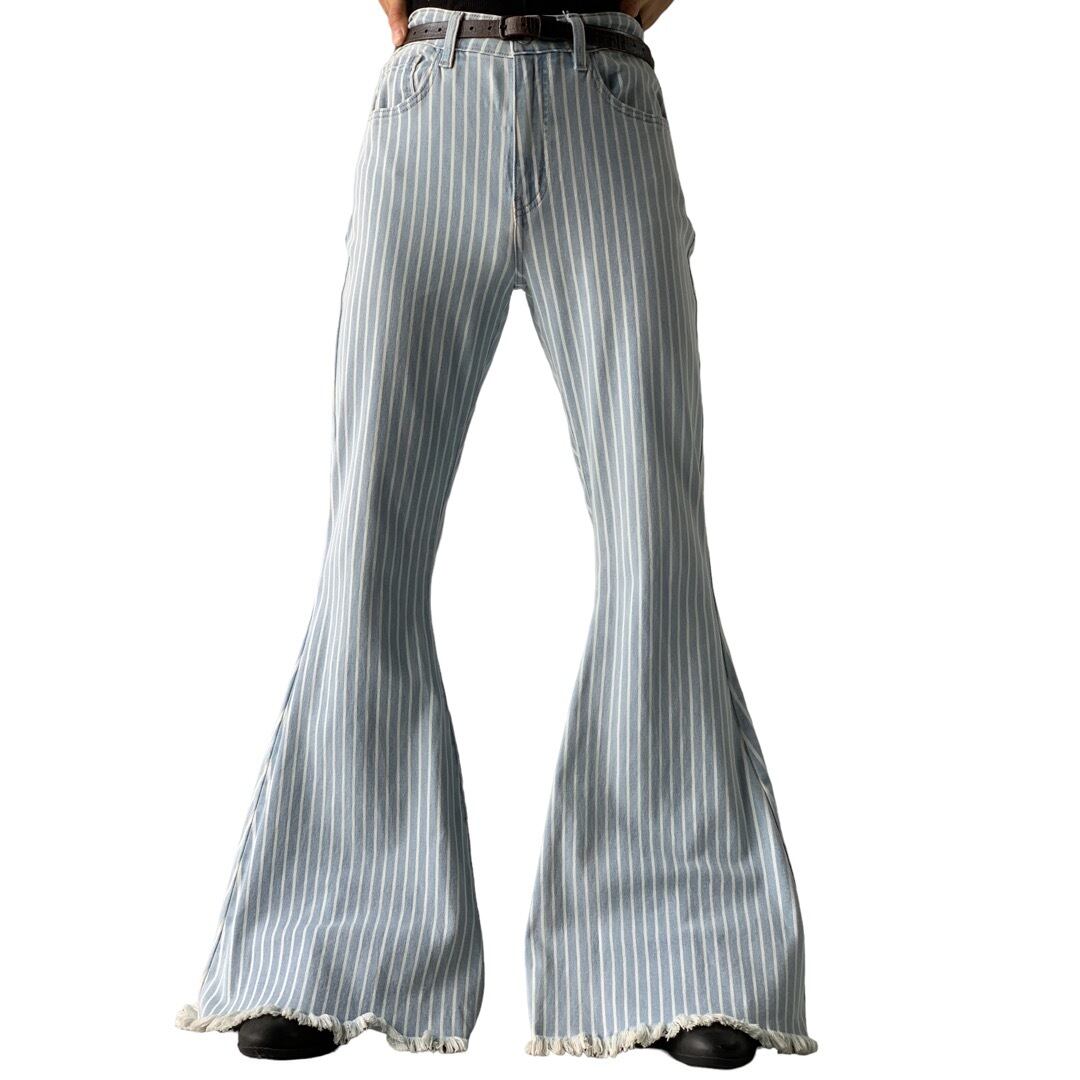 ♾️KanCan♾️ Stripes fringed mega flare denim pants