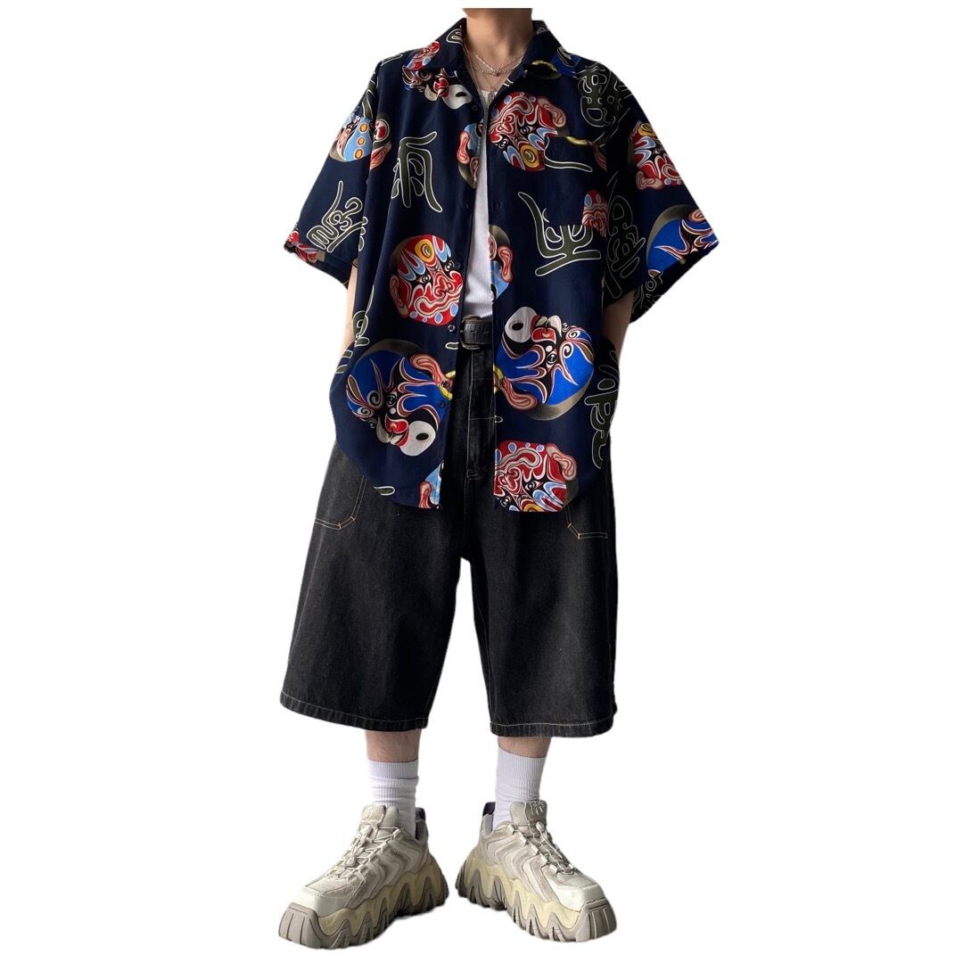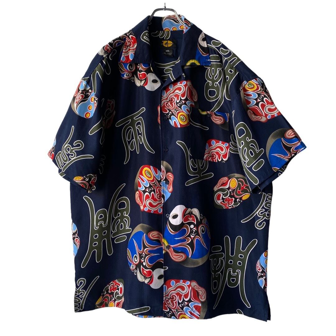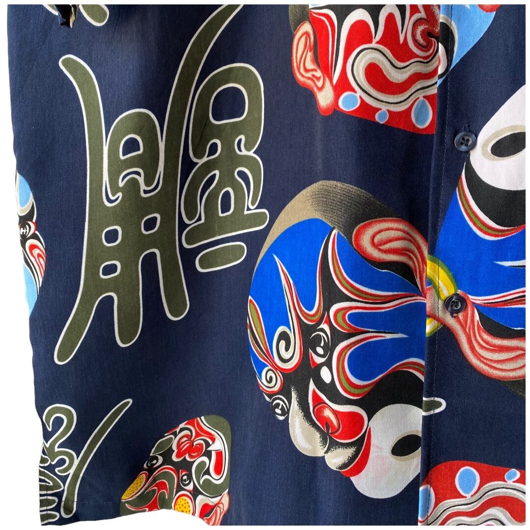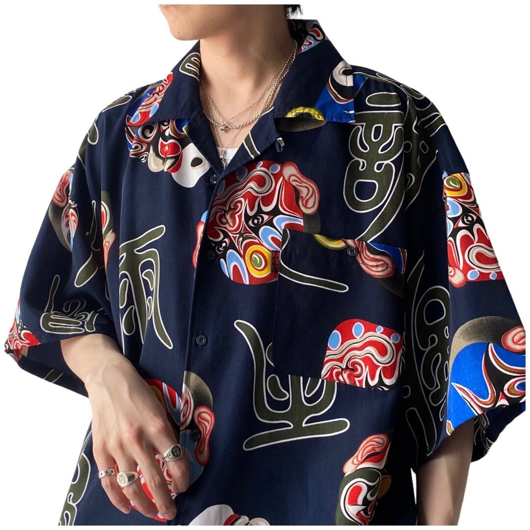 歌舞伎なテンションの面と漢字がランダムにプリントされたデザインシャツ✨✨