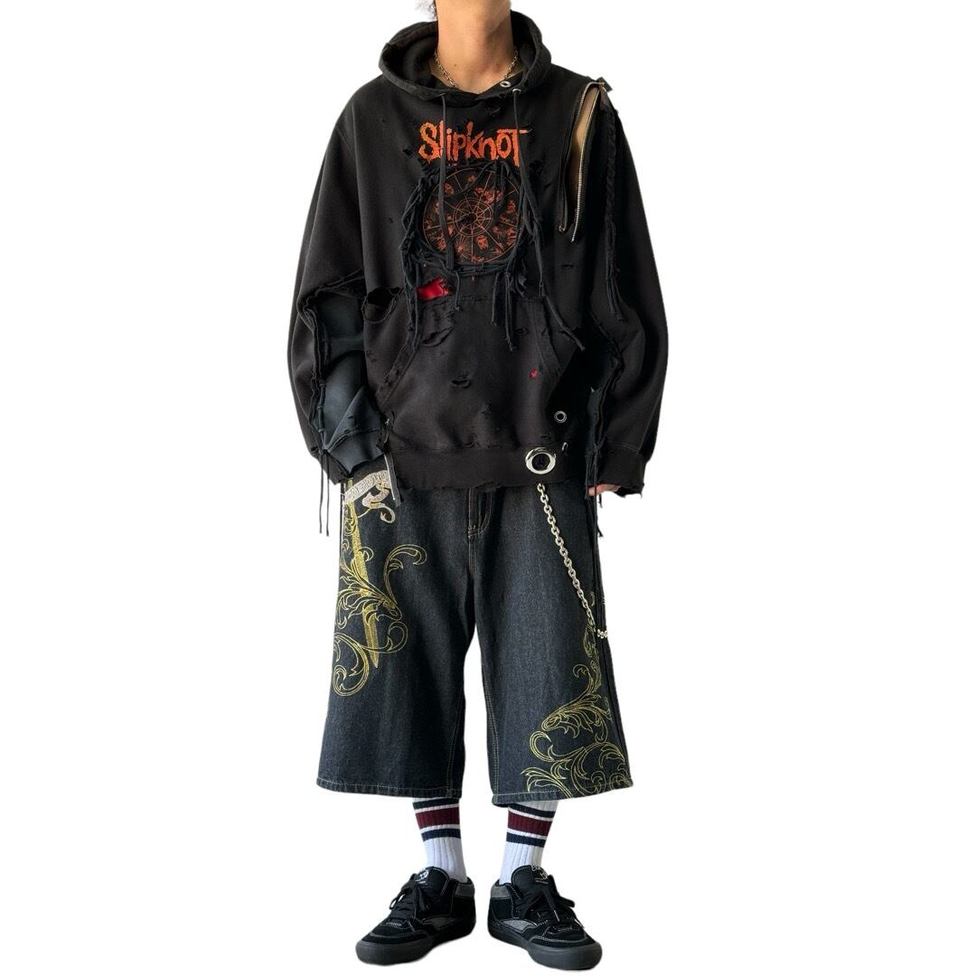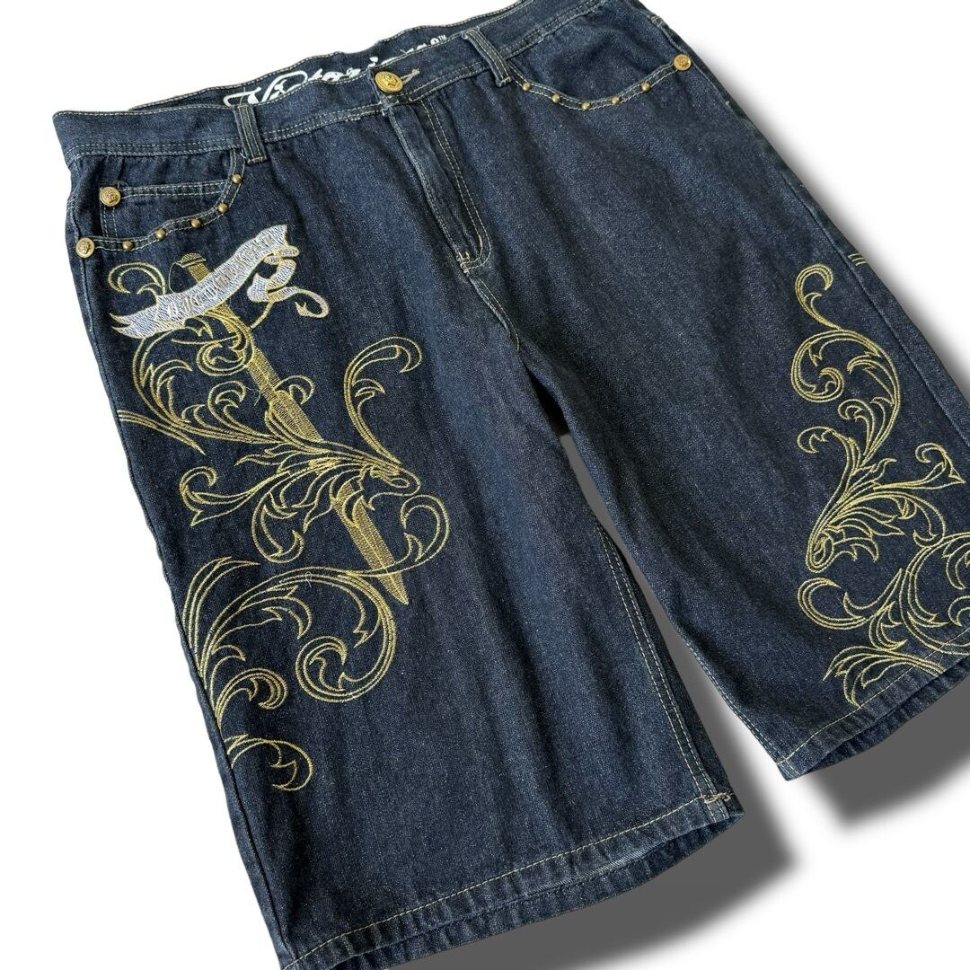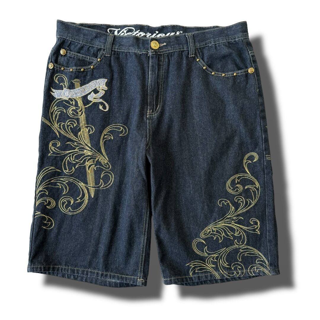 ♾️Vietorious♾️ Design embroidery buggy black denim shorts
