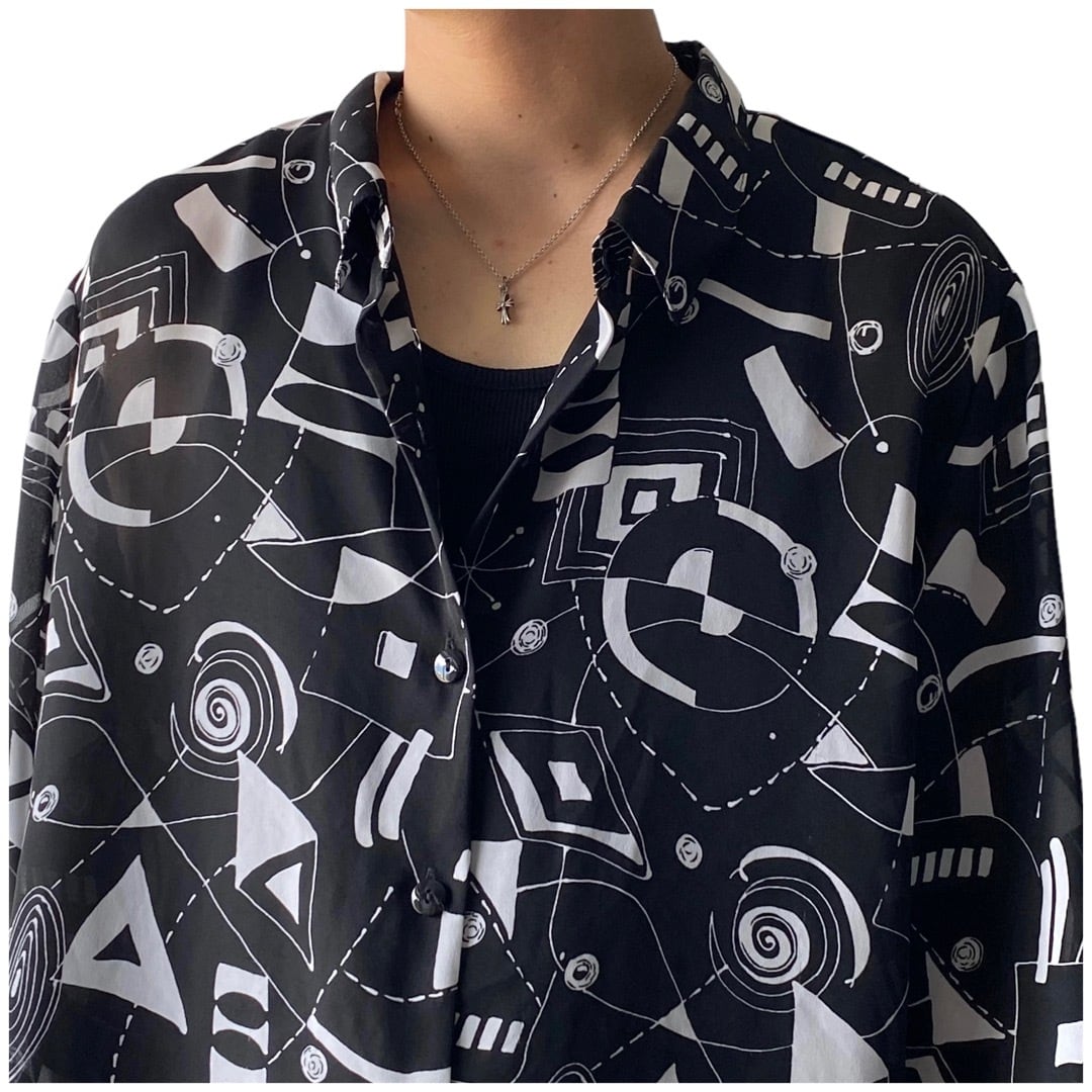 ♾️JOAN LESLIE♾️ Graphics pattern sheer shirt