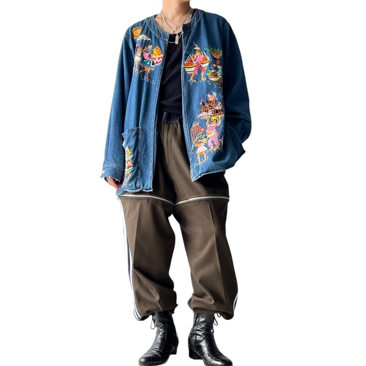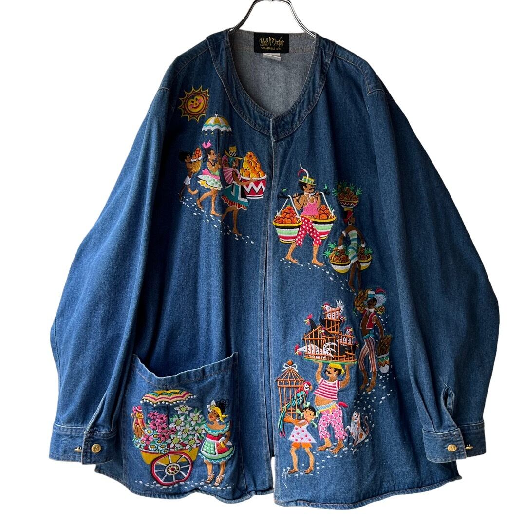 【Bob mackie】Embroidery pattern Buttonless denim jacket