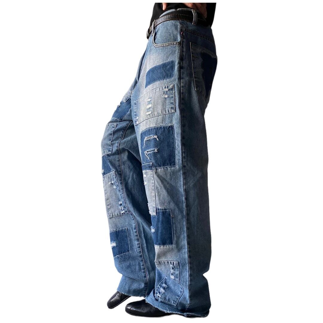 ♾PHAT FARM♾ Patch work design buggy denim pants