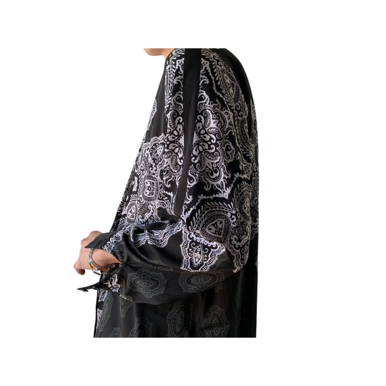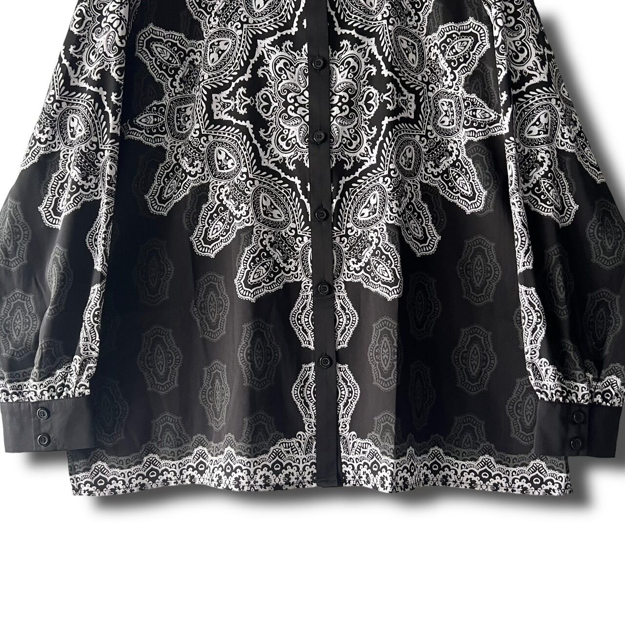 【Bob mackie】Poly Spandex All-over pattern Mao collar shirt