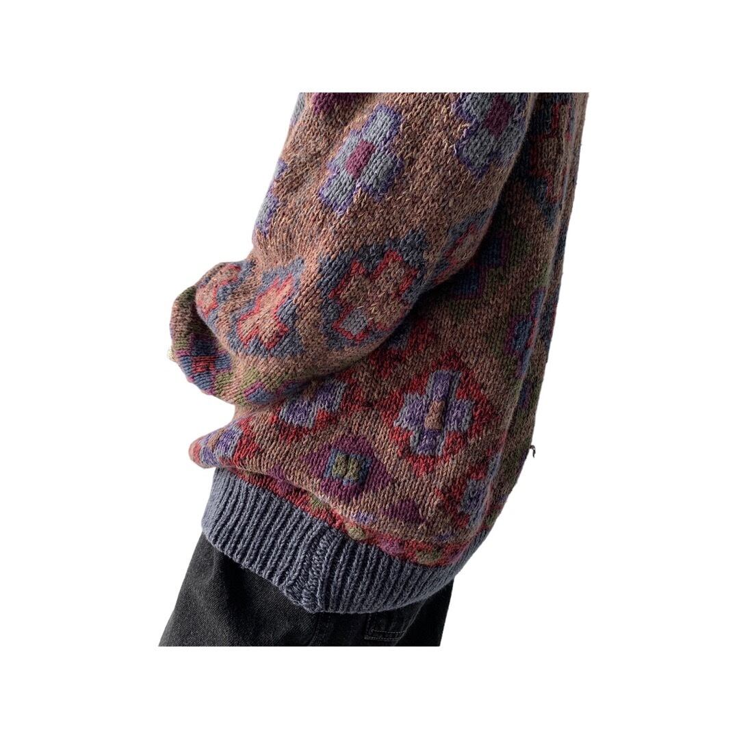幾何学的風な花模様のパターンが印象的なニットセーター‼︎‼︎