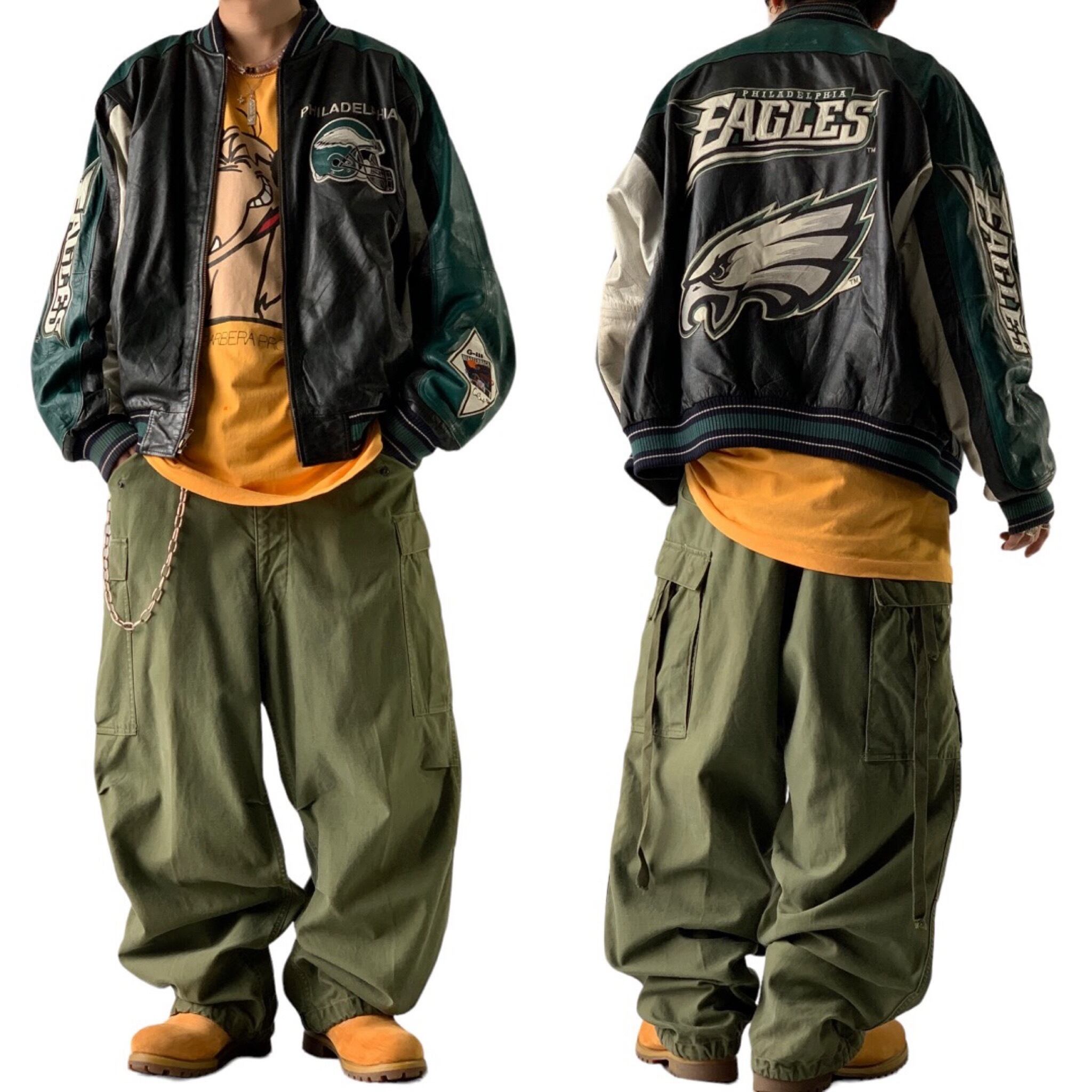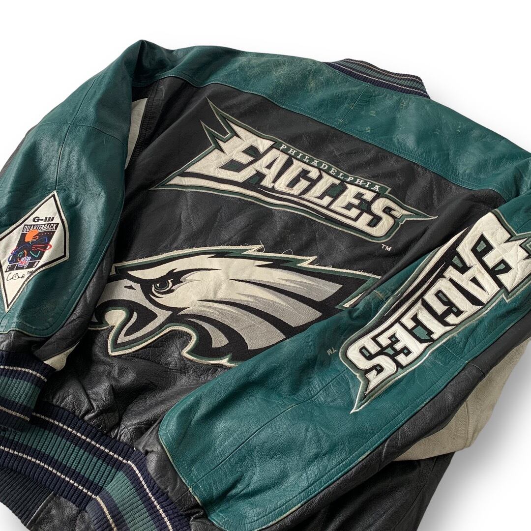 ♾ 90's carl banks ♾ "PHILADELPHIA EAGLES" color switching design leather jacket size M