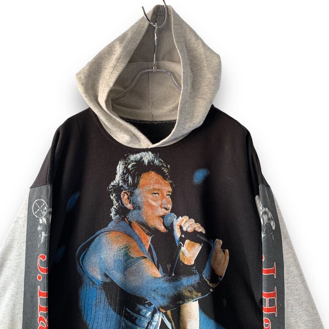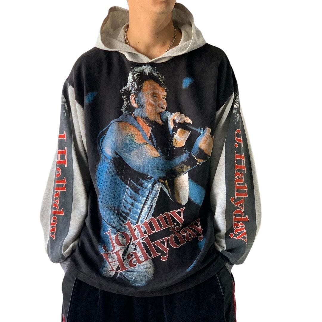 フランス出身の歌手であり俳優のジョニー・アリディがプリントされたヴィンテージファンメイドフーディ✨