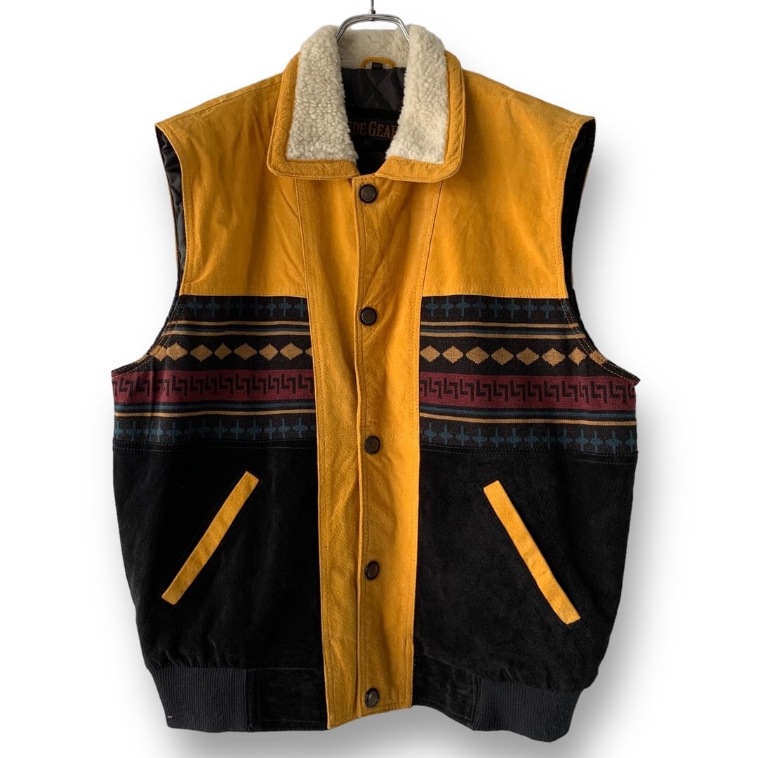 ️配色抜群襟のボア切り替えが可愛らしいアクセントのデザインレザーベスト✨️