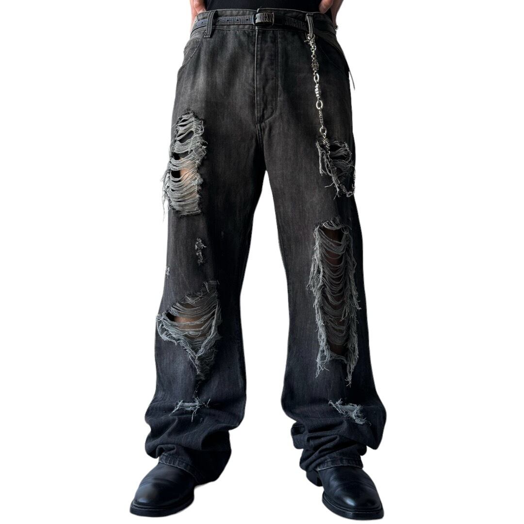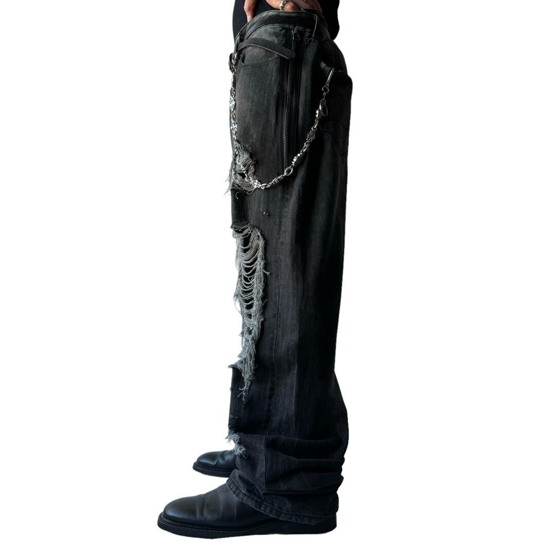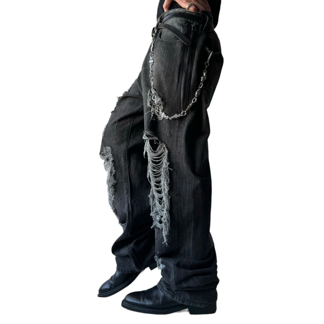 ♾️SEAN JOHN♾ side zip design hard crush faded black wide denim pants