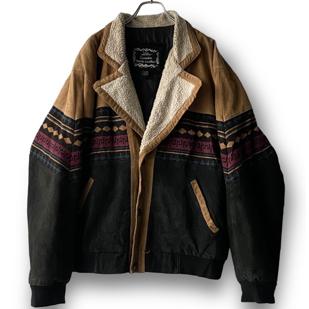 ♾CASUAL OUTFITTERS♾ boa switching nordic patterned design suede leather jacket sizeL