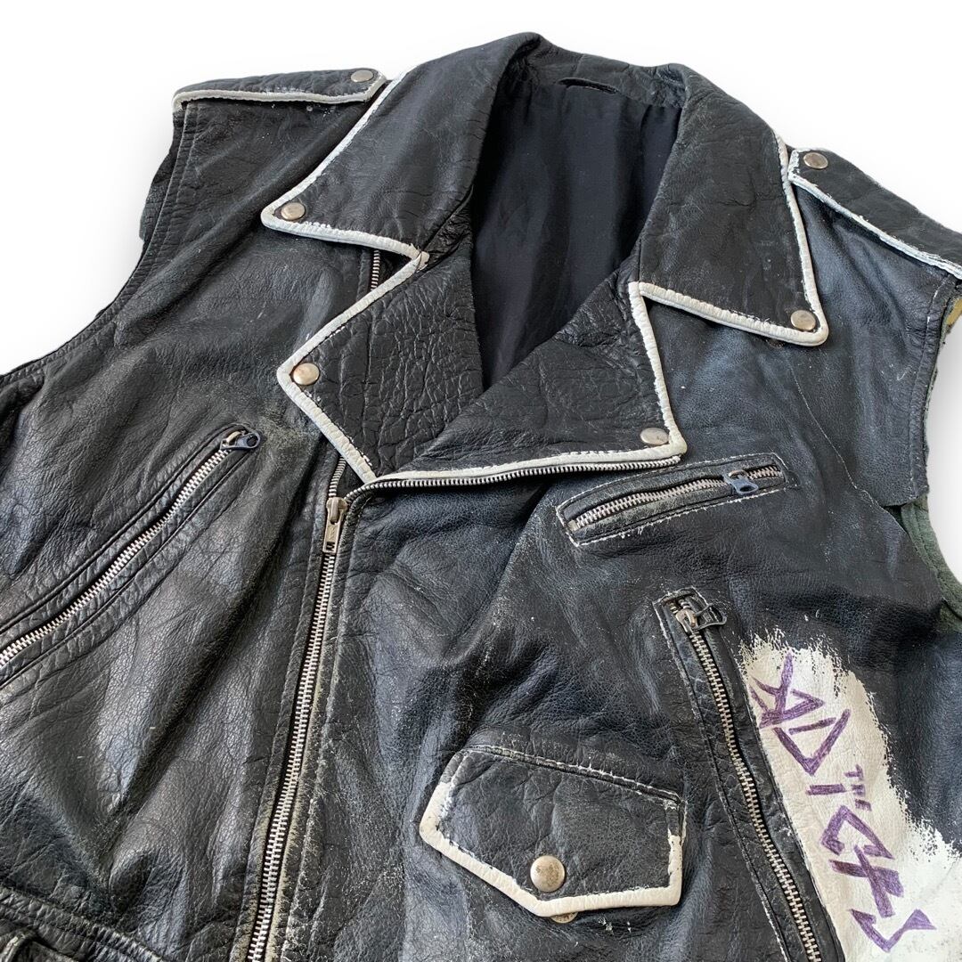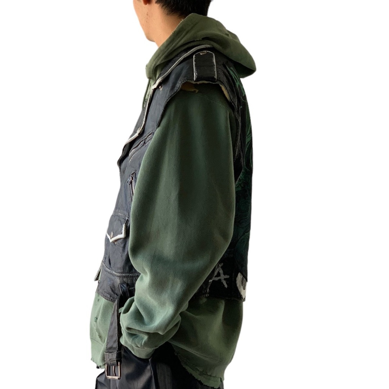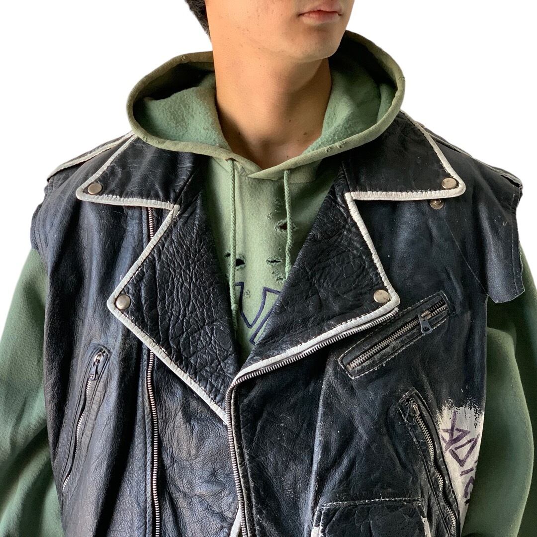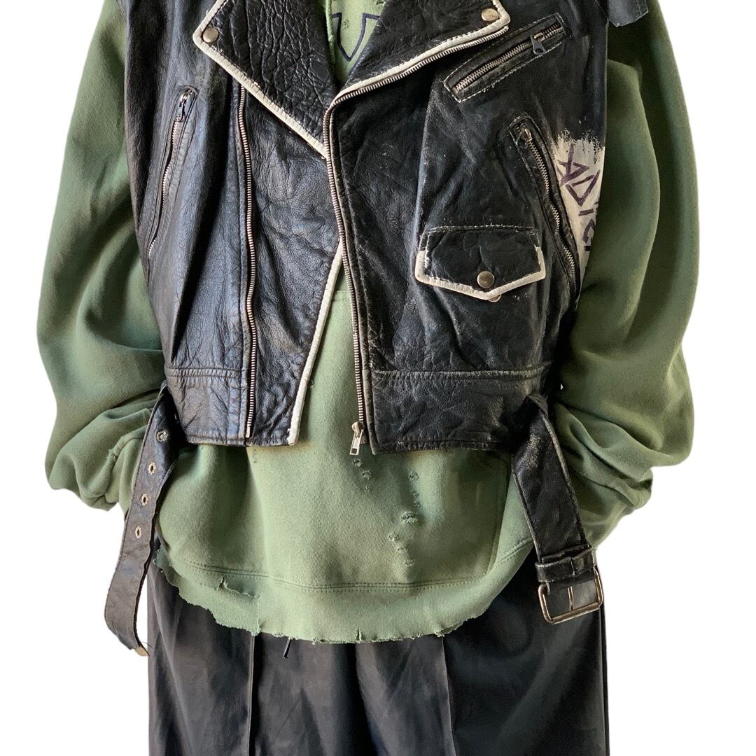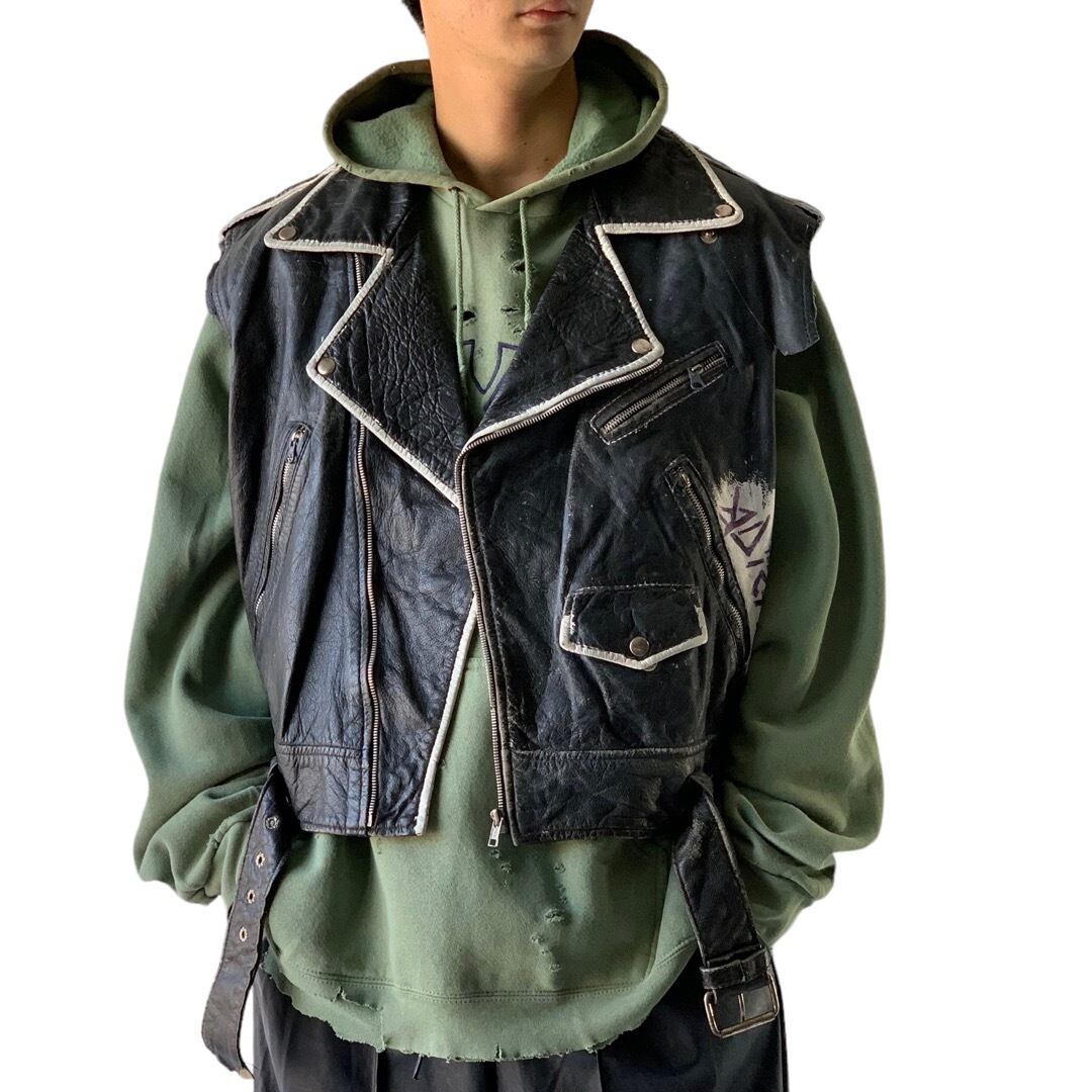 袖を大胆にぶっ切り落としたグランジテイストぶりっぶりのディテールが目を引くパーフェクトカスタムデザインのライダースベスト!!!