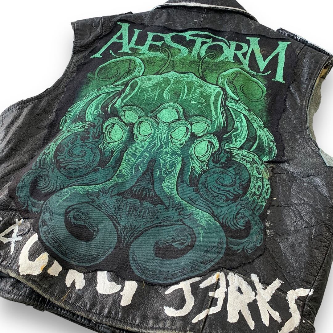 クタ感にがす感たっぷりの表情あるヴィンテージライクなレザーがかなりハンサム◎背面にスコットランドのヘヴィメタルバンド"ALESTORM"のTシャツを取り付けた無二なカスタムがセンス抜群!!!部分にペイントまでされた抜かりないデザインが圧倒的❤︎