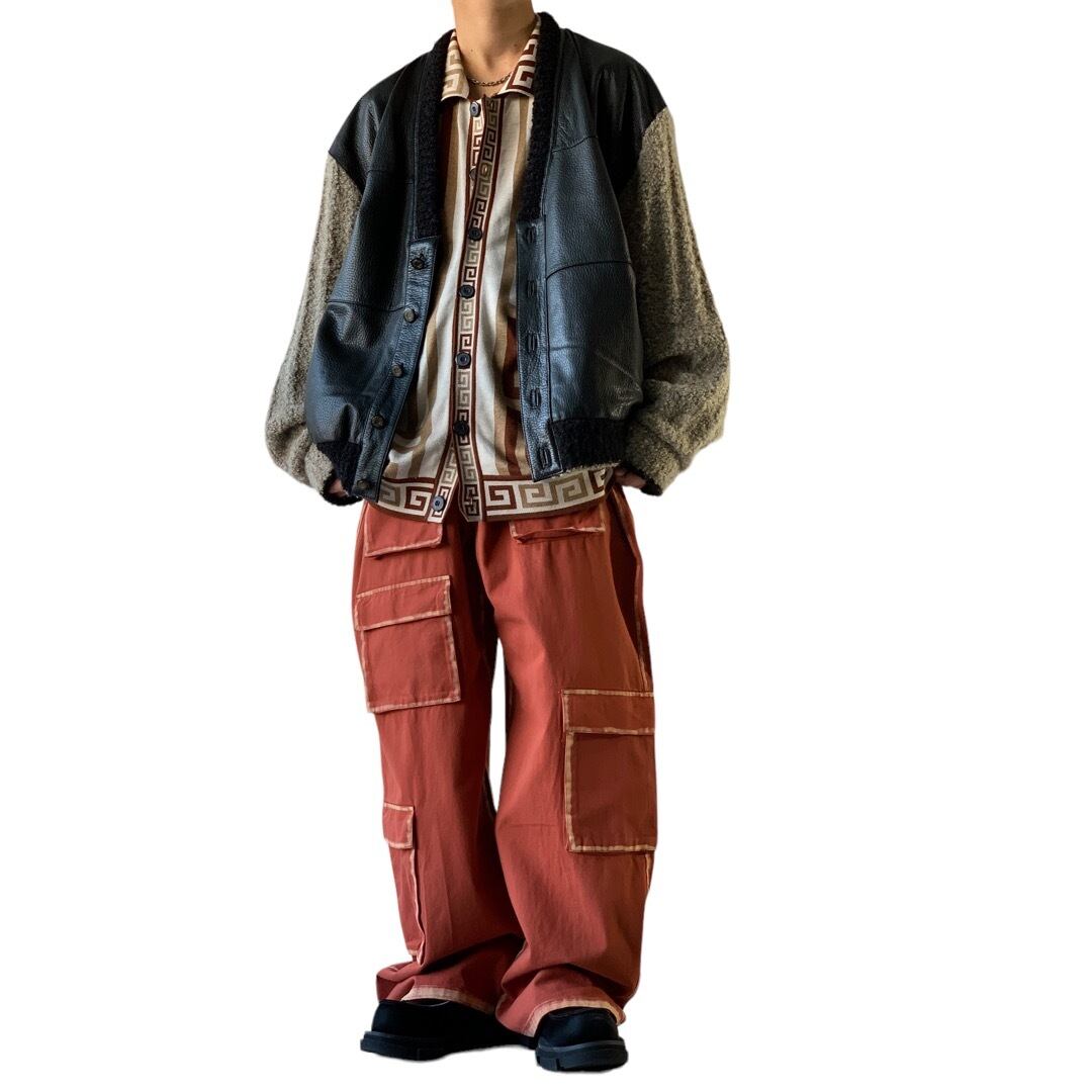 身頃に極上のリアルレザーを使用し、アームと襟がかなりのボリュームのある3Dデザインが洒落たリアルレザーカーディガンブルゾン!
