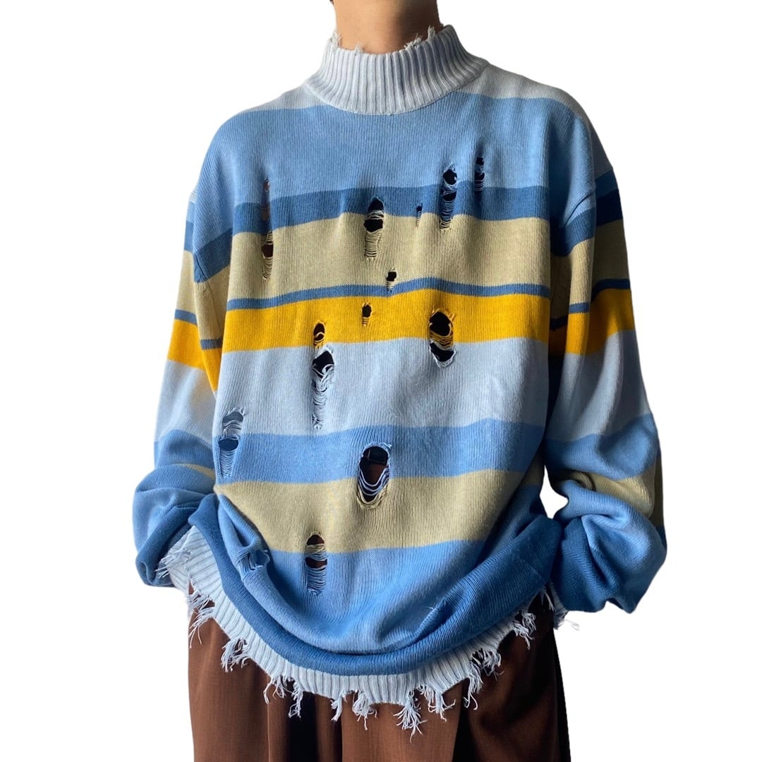 ♾source geans♾ crushed line design over silhouette mock neck knit SIZE XL