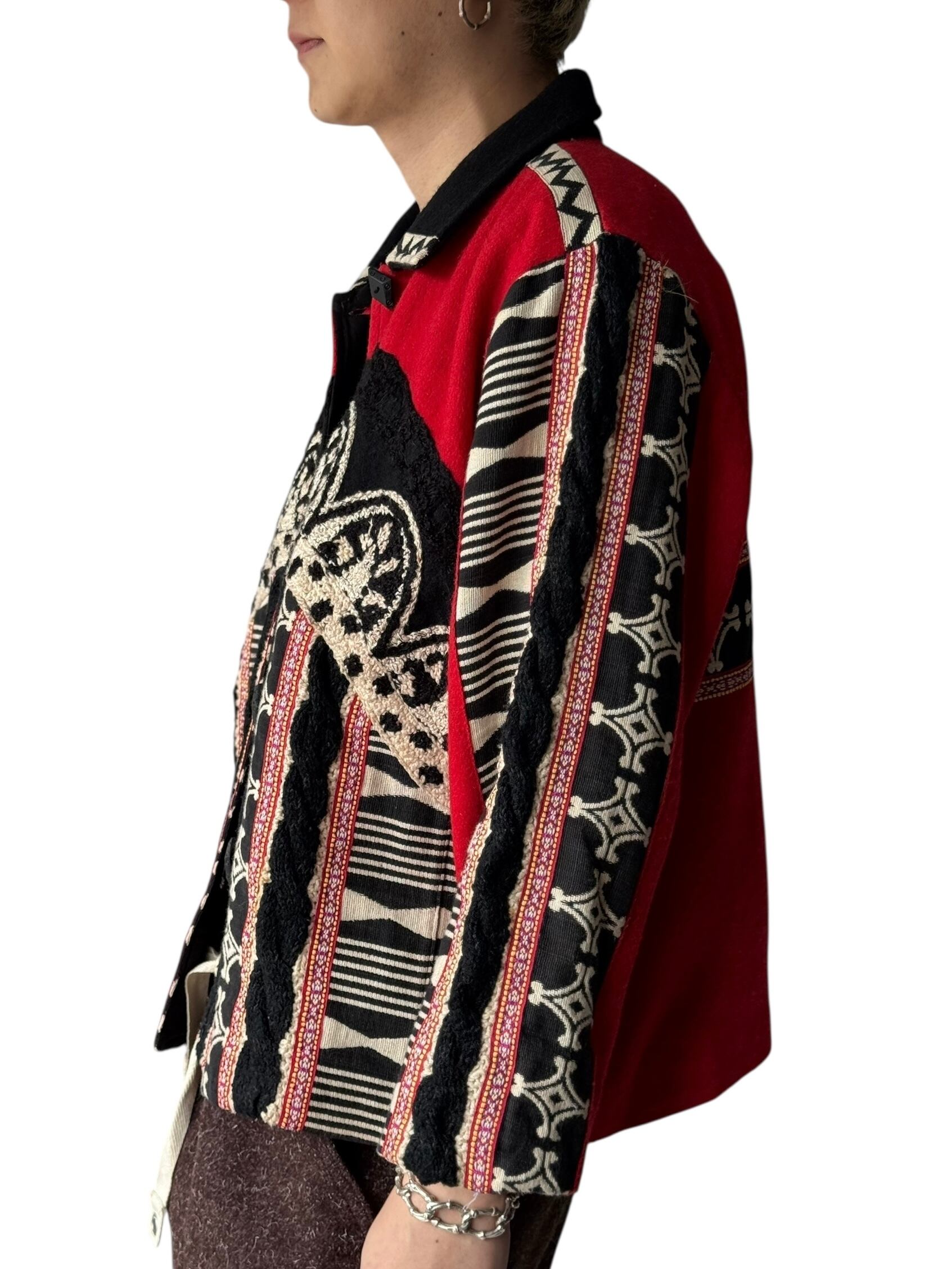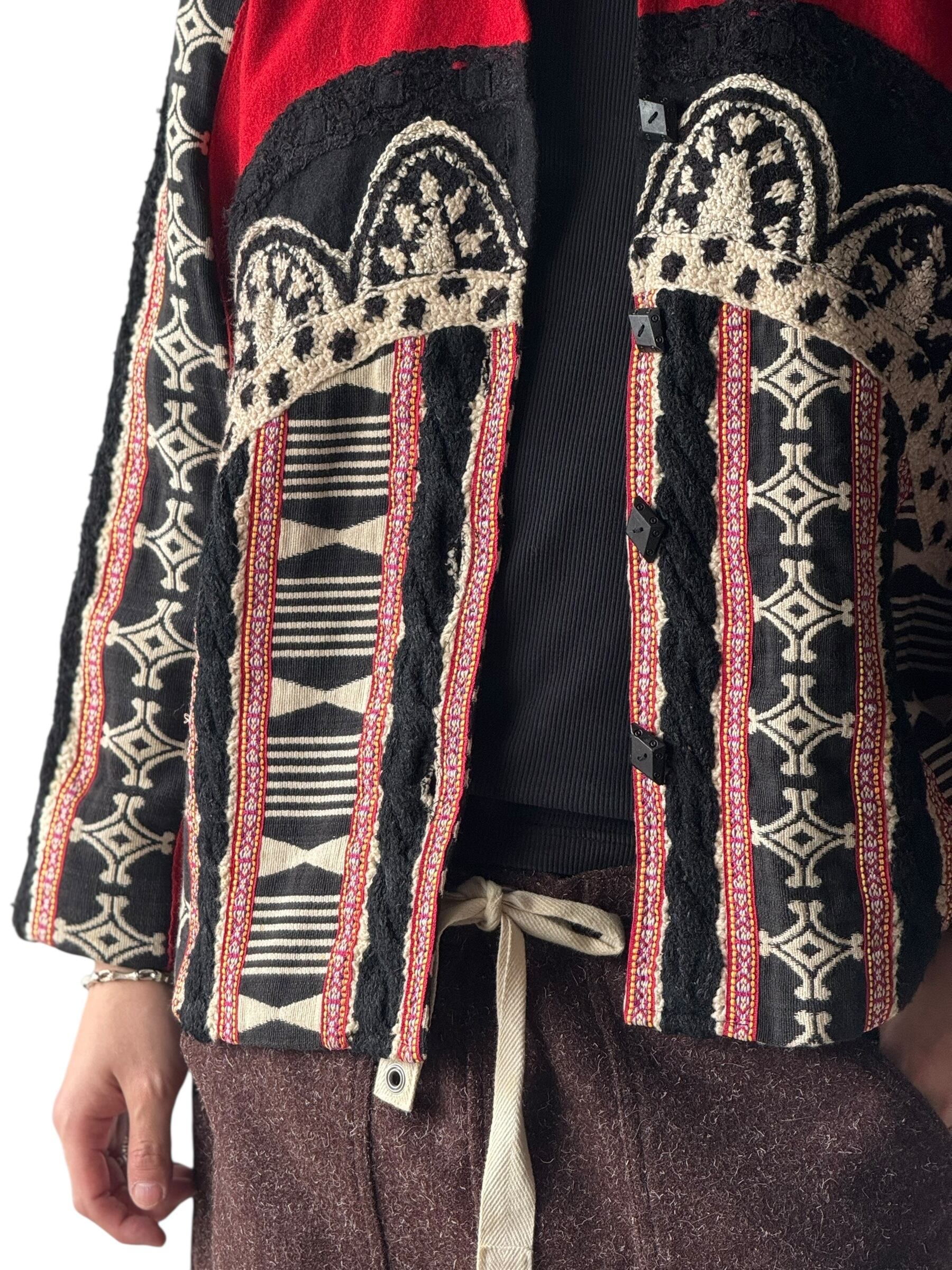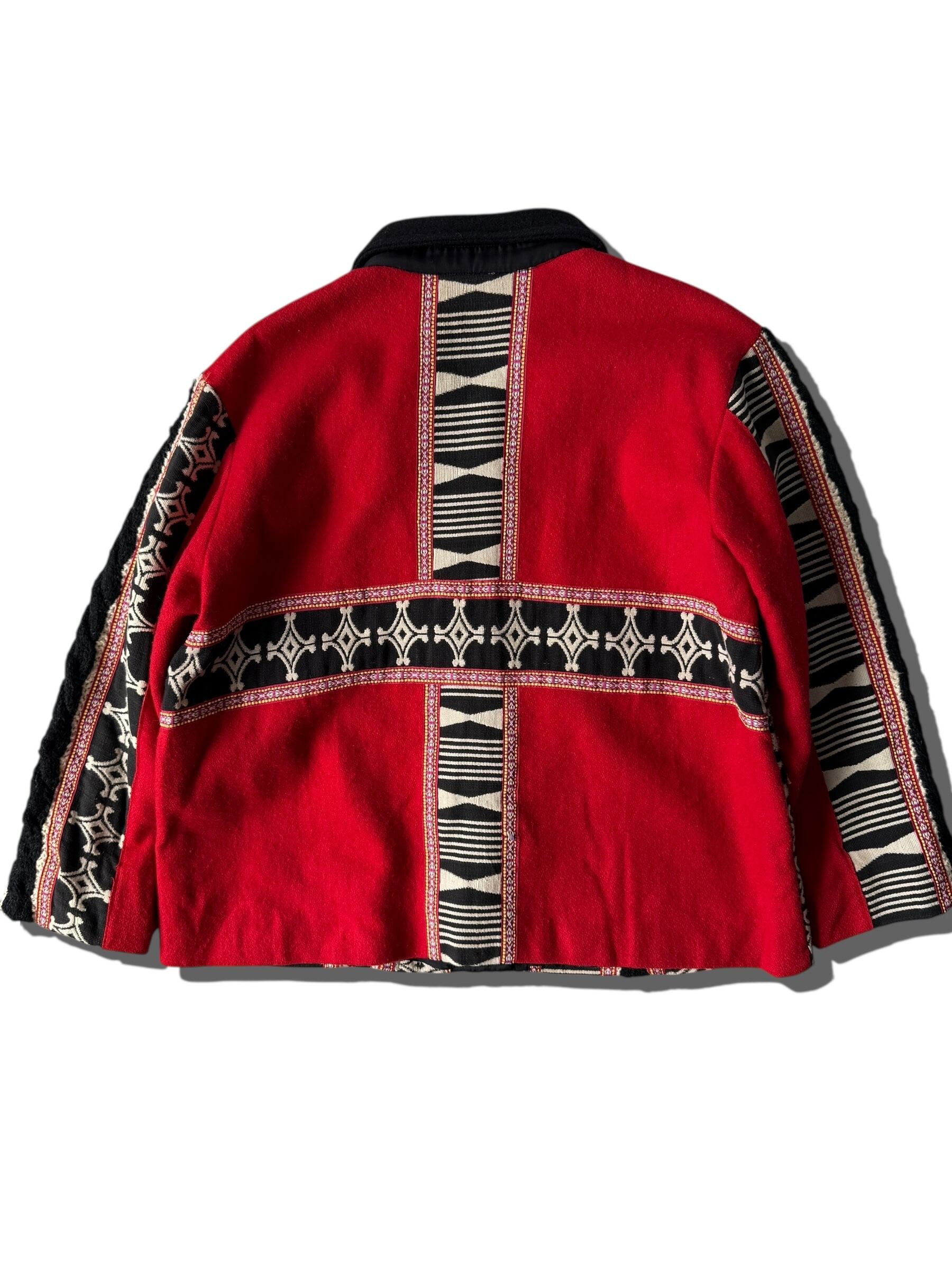 複雑に編まれてさまざまな生地が切り替えで一つを形にしたインパクトあるジャケット❗️