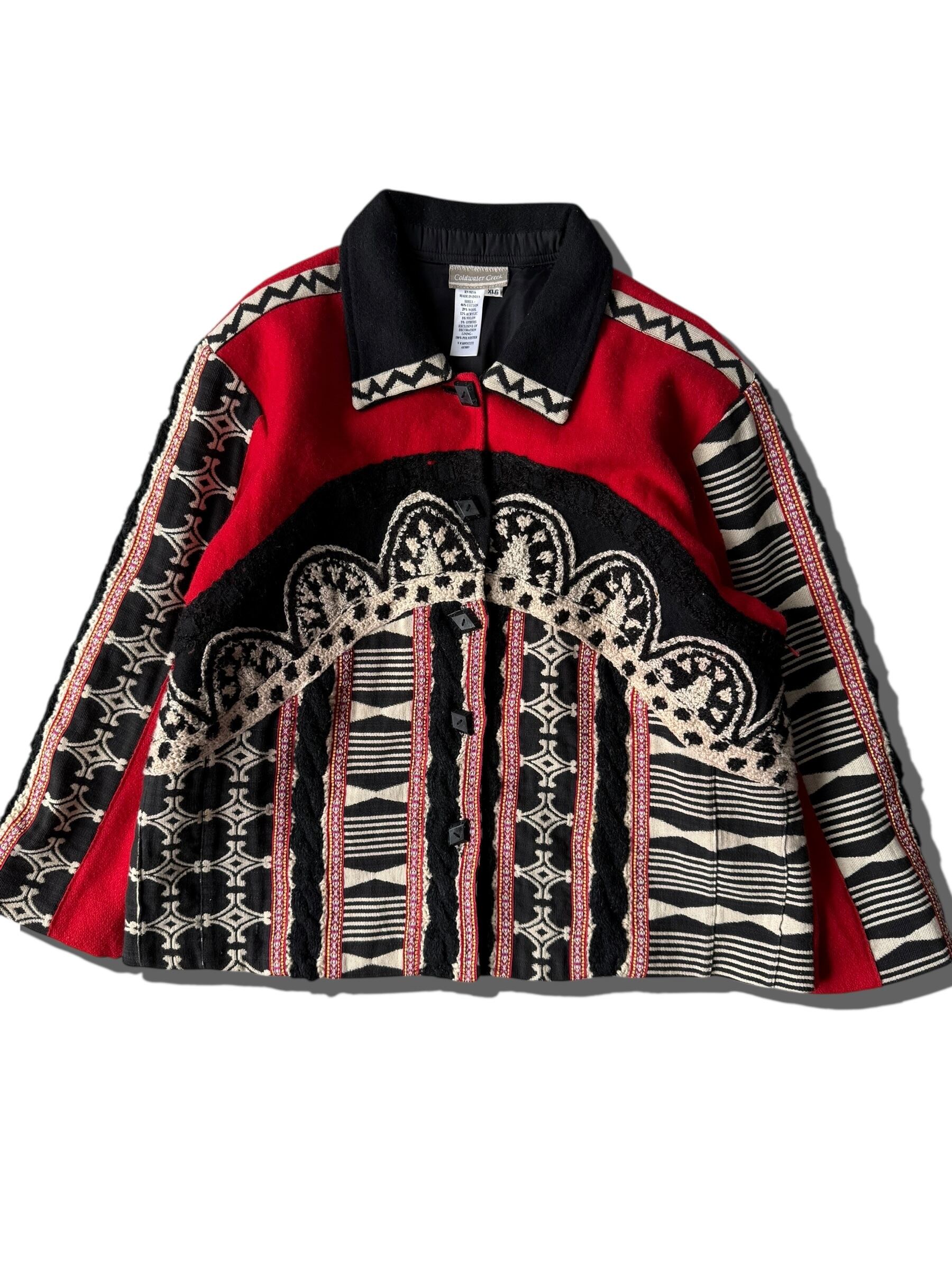 【Coldwater Creek】Multi-fabric decorative embroidered wool jacket