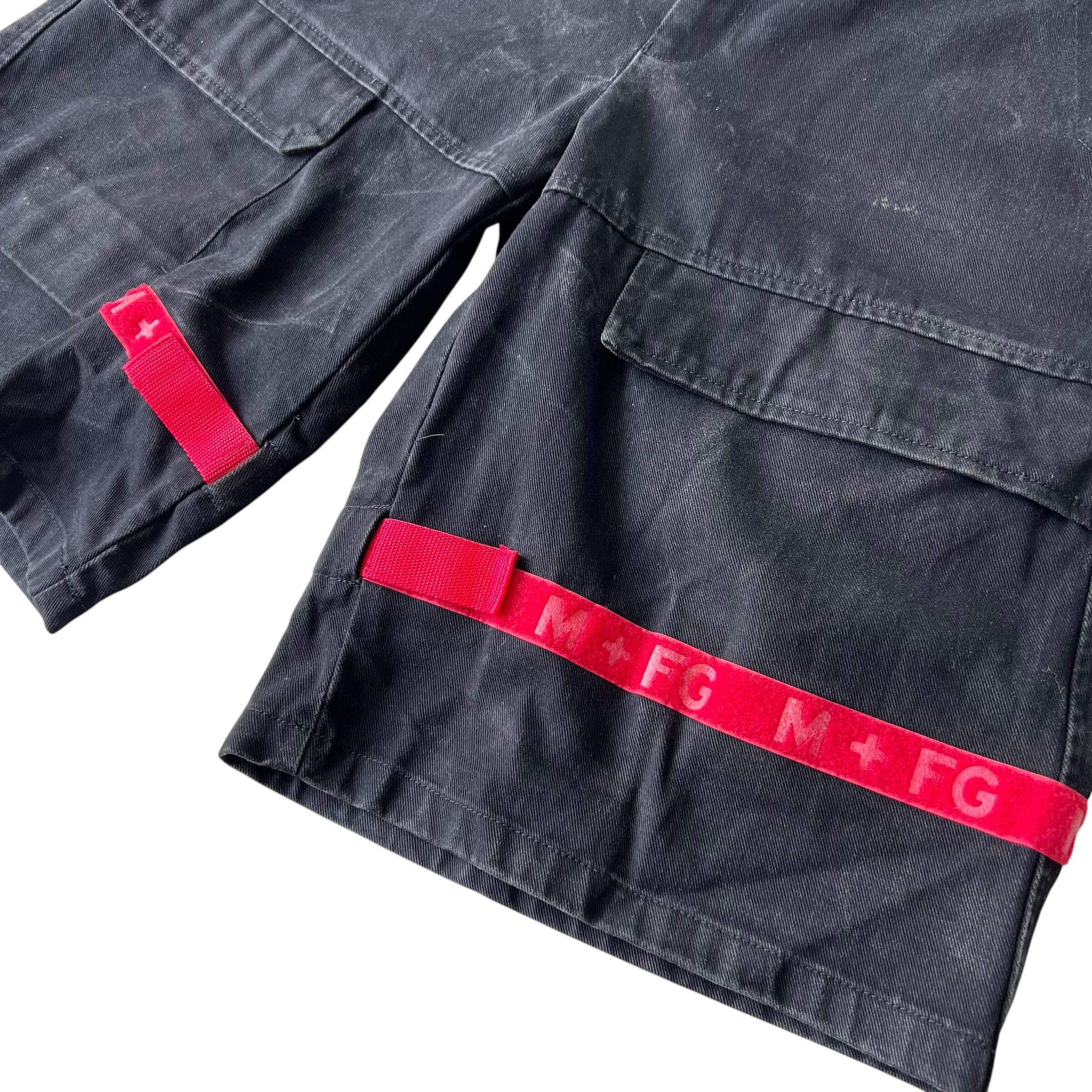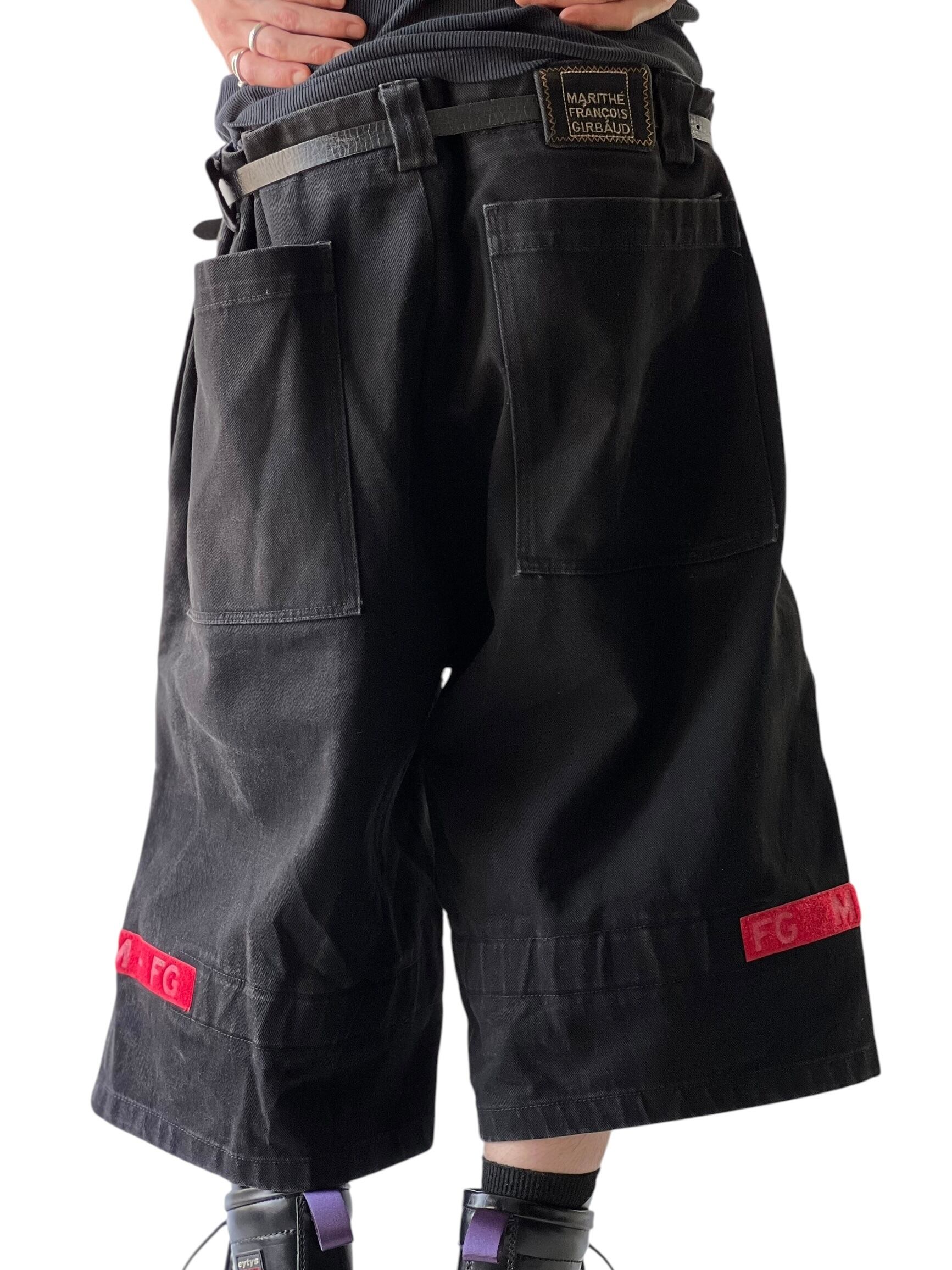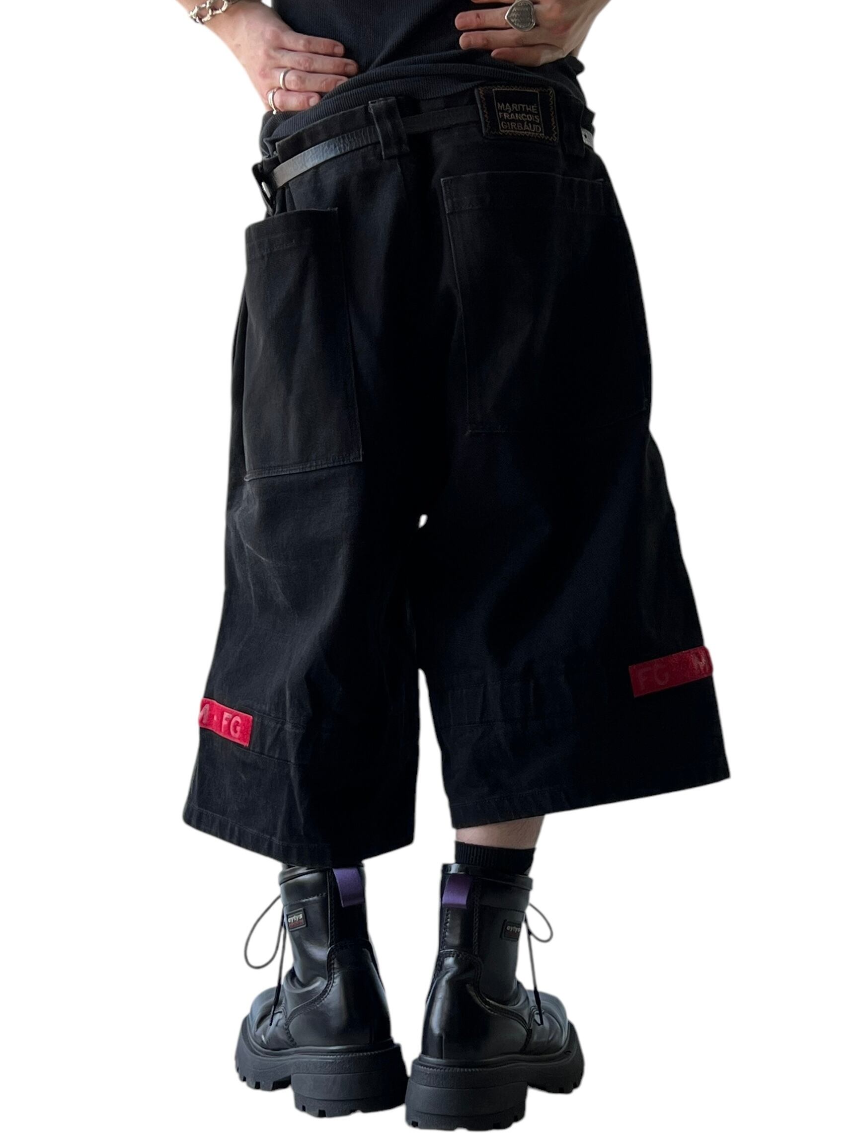 【90s MARITHE FRANCOIS GIRBAUD】 Shuttle Tape Black denim wide half pants