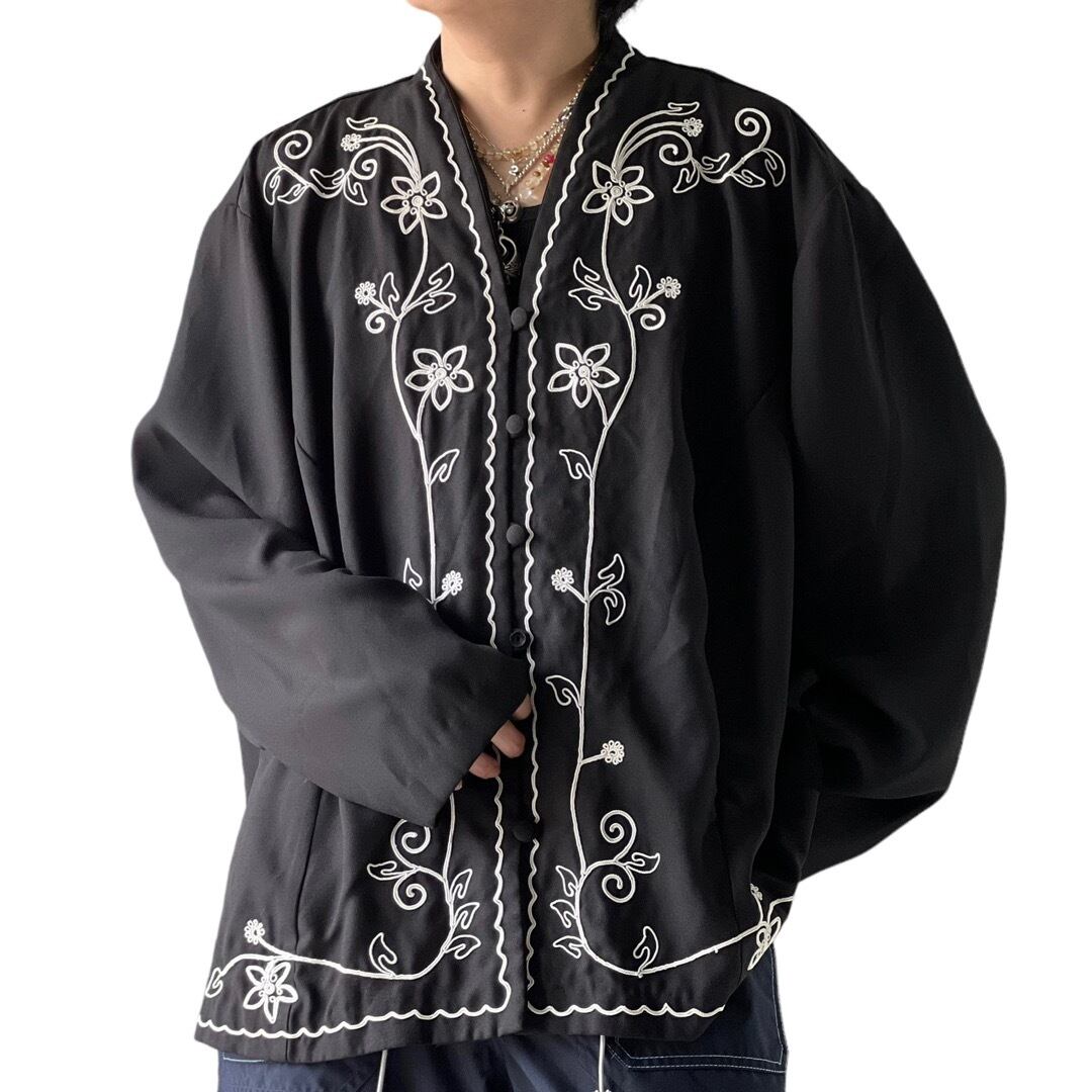 【KARI'S KORNER】Flower embroidery No collar jacket