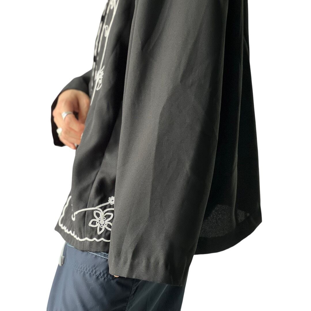 ポリエステルの揺れと落ち感ある素材に対して刺繍が映えた逸品。