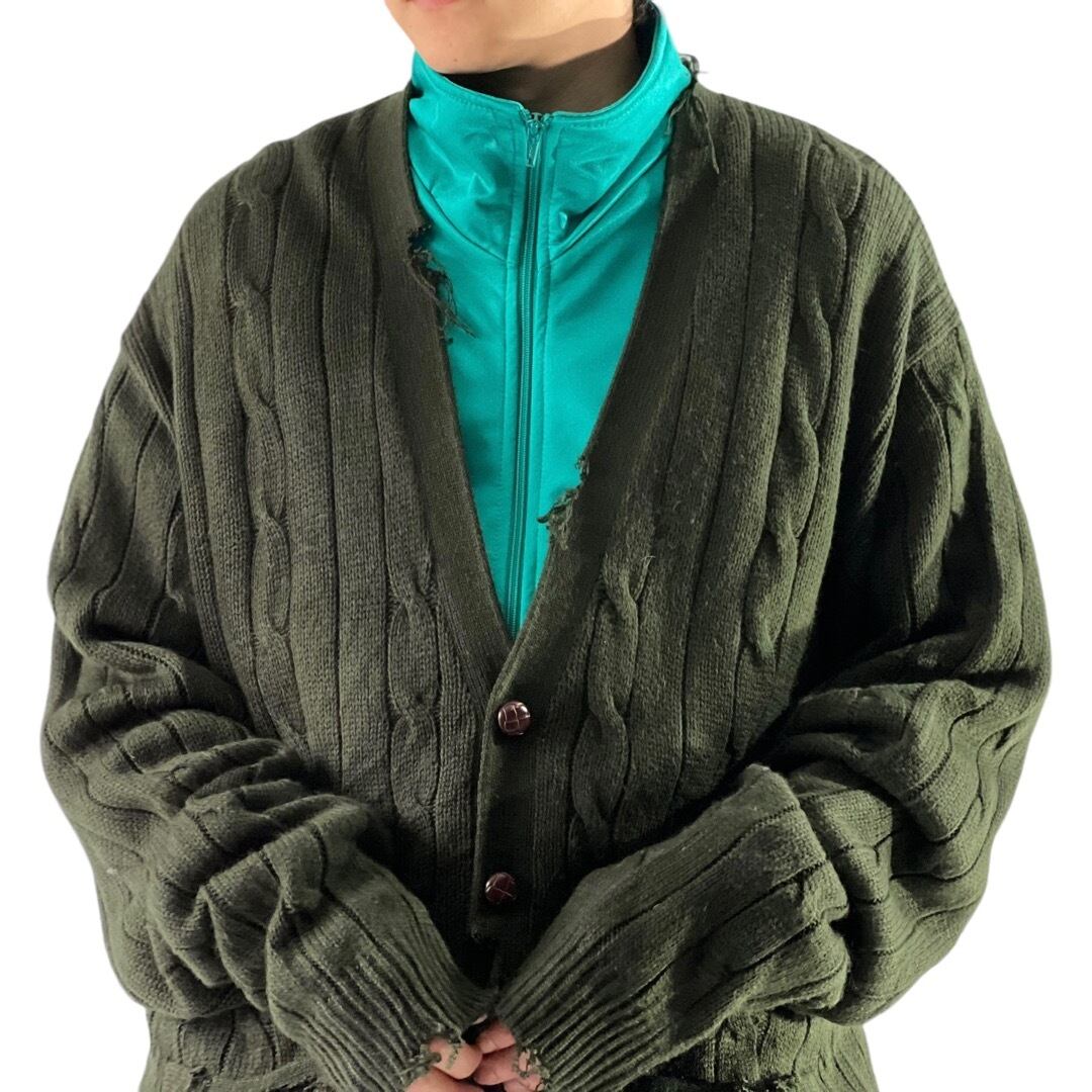 【TOWNCRAFT】 crushed design cable knit cardigan "ash green"