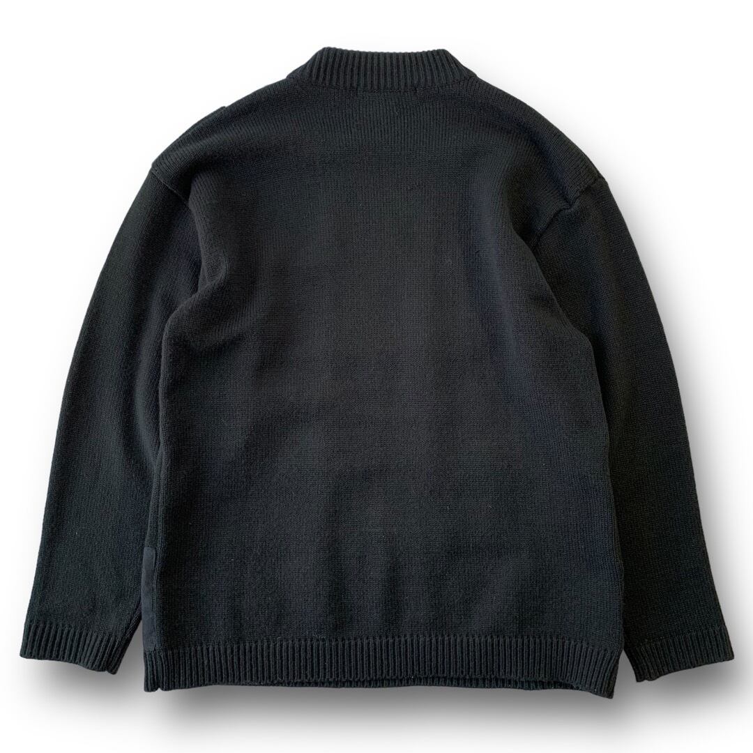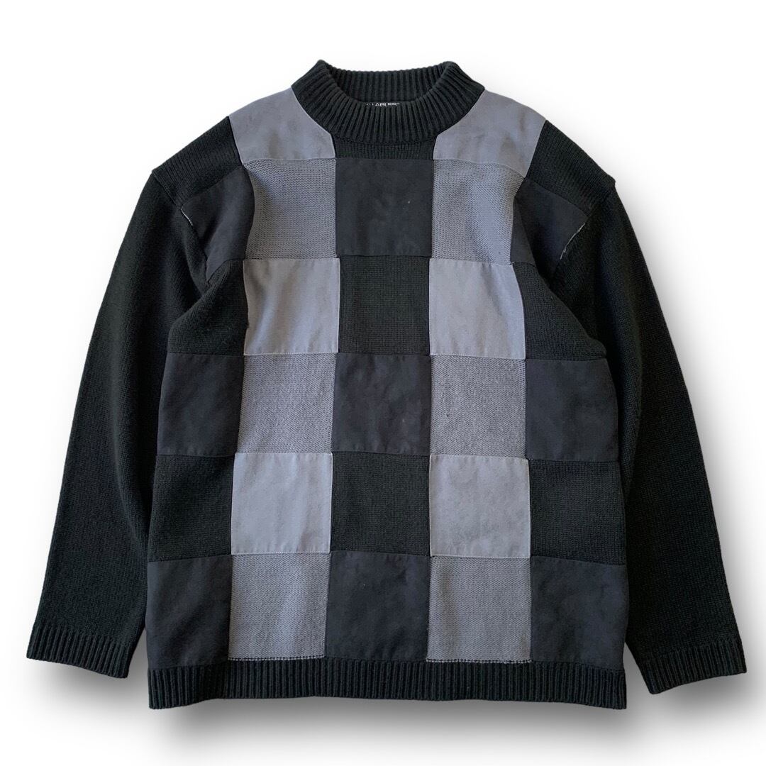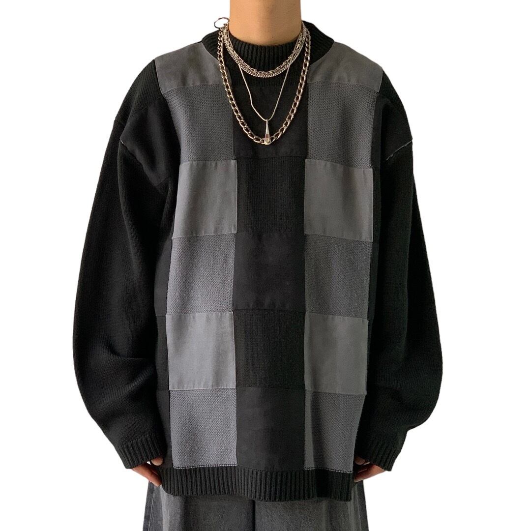 フェイクスエード混じりの異素材切り替えのパネルと無地で構成されたデザインニット✨