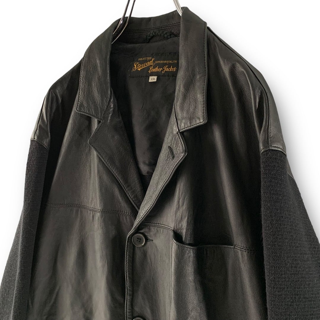 ♾Stewart♾ knit combination design leather tailored jacket sizeXXL MADE IN ITALY