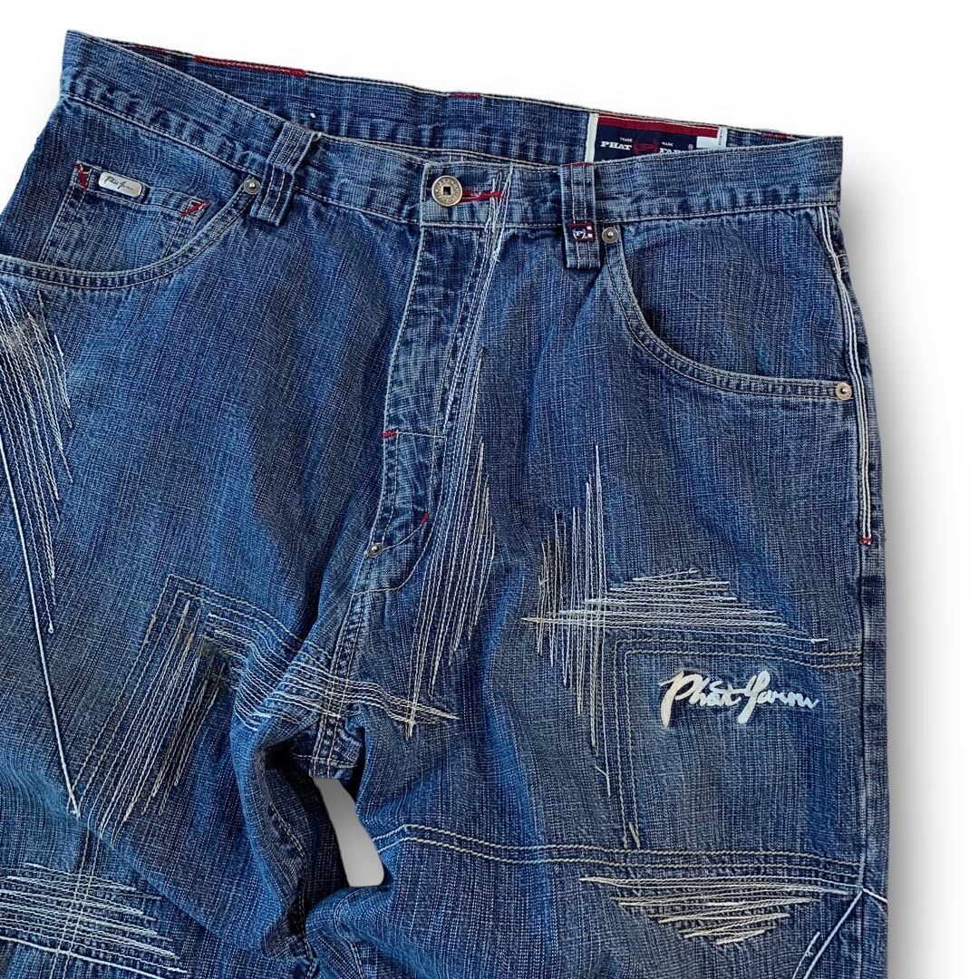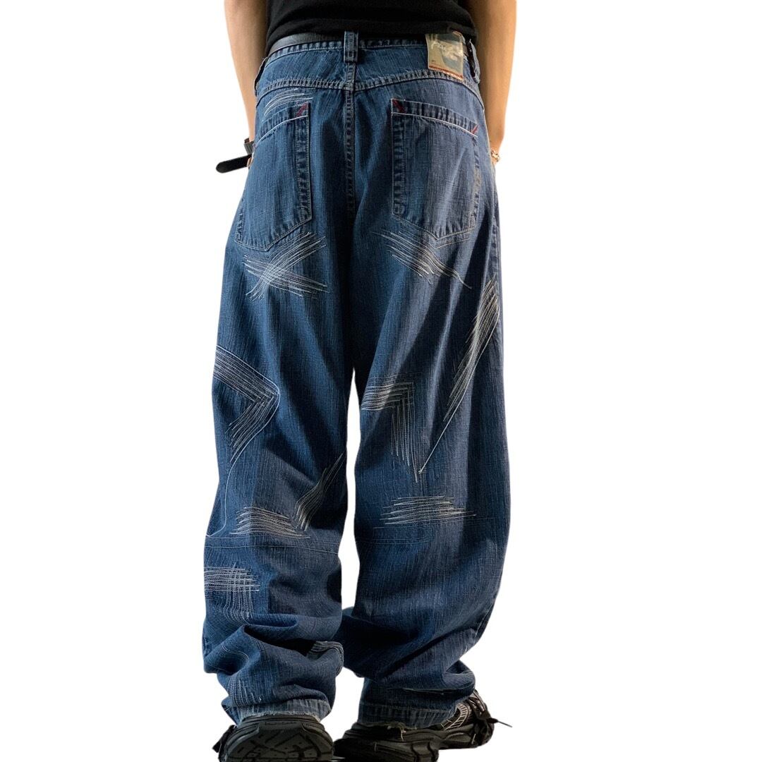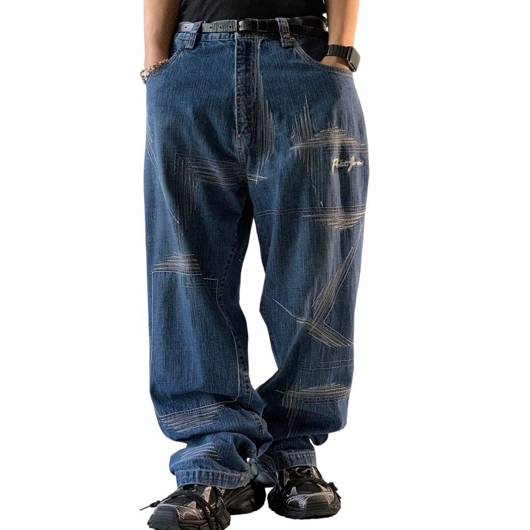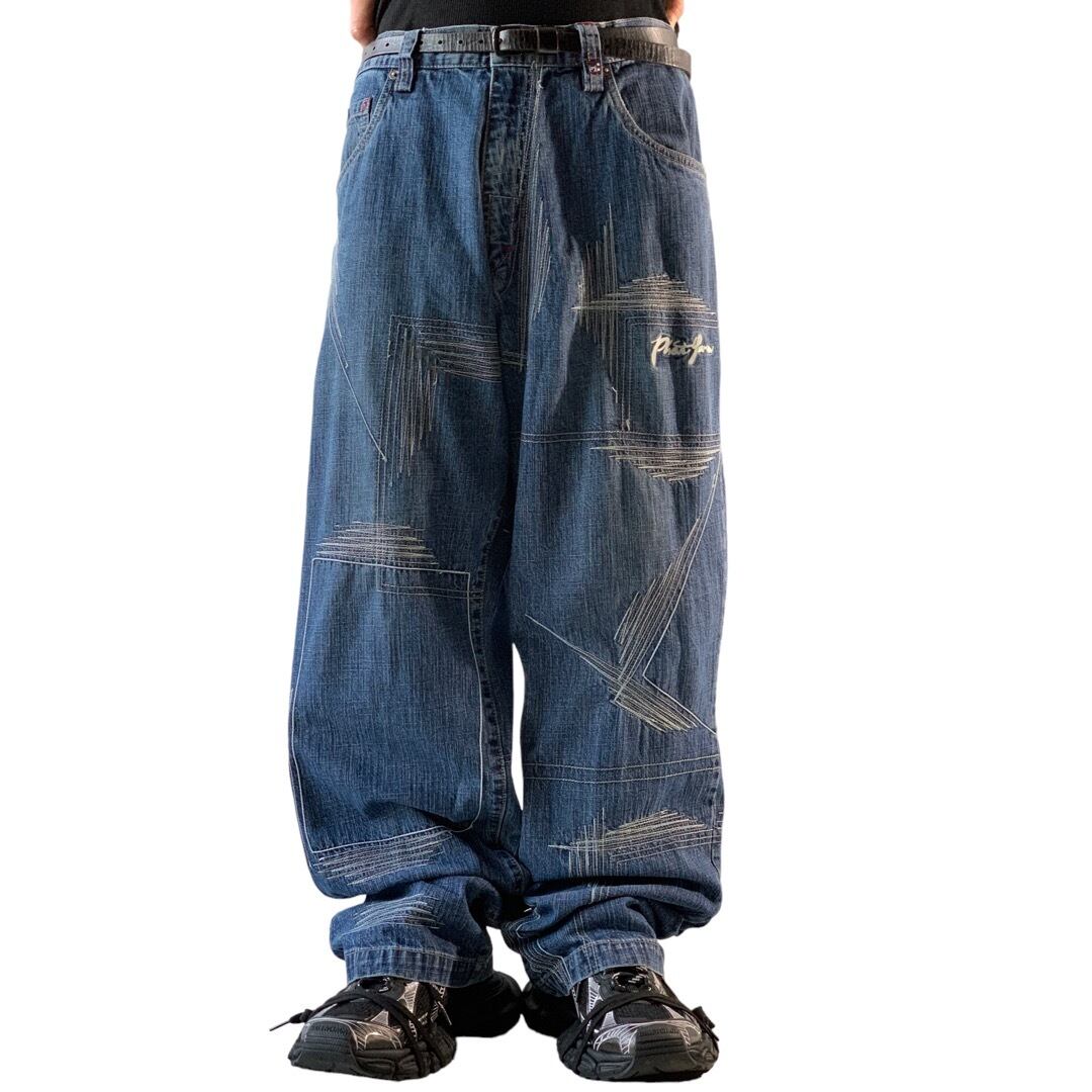 ♾PHAT FARM♾ Design stitch work wide buggy denim pants